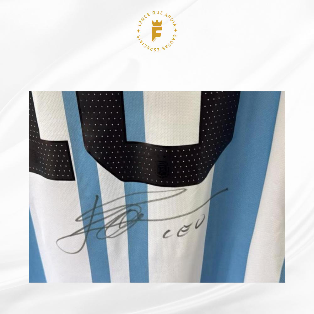 Camisa Argentina preparada para a final da Copa do Mundo de 2022, autografada Messi