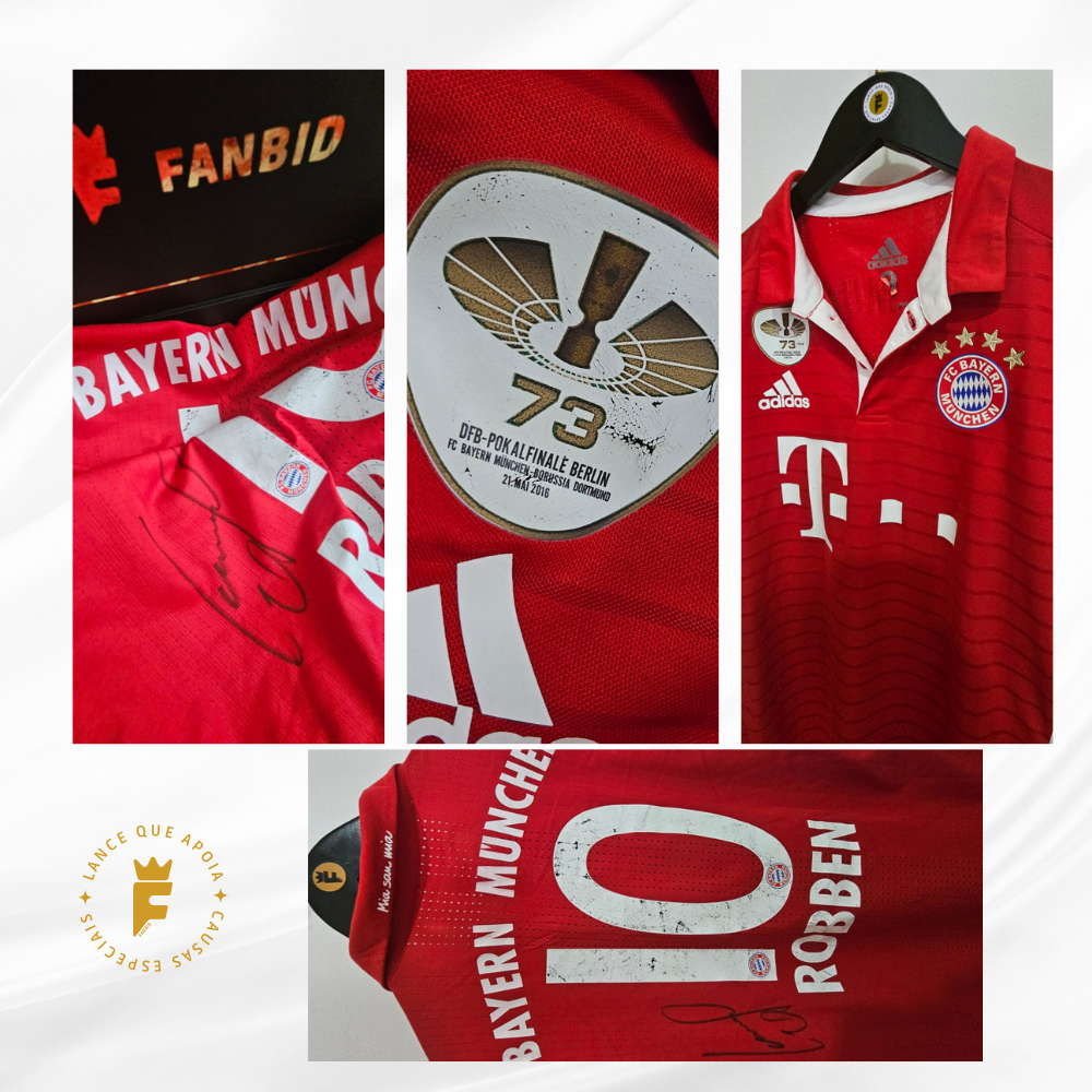 Apesar da camisa de ter o kit de camisa de jogo preparada, Arjen Robben não jogou a final da Copa da Alemanha (DFB-Pokal) contra o Borussia Dortmund em 21 de maio de 2016. O motivo: Robben estava afastado devido a uma lesão persistente na virilha/adutores, que o manteve de fora da reta final da temporada 2015/2016. O jogo: A final ocorreu no Estádio Olímpico de Berlim, e o Bayern de Munique venceu o Borussia Dortmund nos pênaltis (4-3) após um empate em 0 a 0 no tempo normal e prorrogação. Apesar da ausência de Robben, o Bayern de Munique conquistou o título da Copa da Alemanha 2015-16, garantindo a dobradinha nacional sob o comando de Pep Guardiola naquele ano. Robben estava presente, foi para o campo comemorar com o elenco.