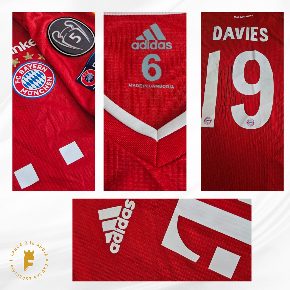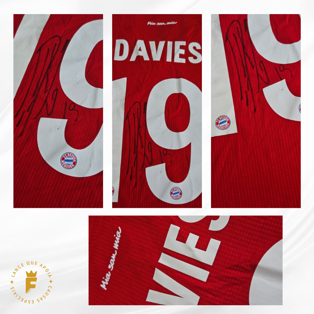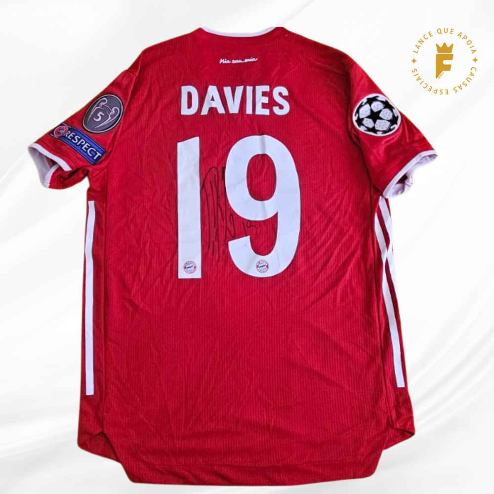 Camisa Bayern 2020-21, final Champions 2019-20 (Campeão), N19, vers jogo, autografada Davies