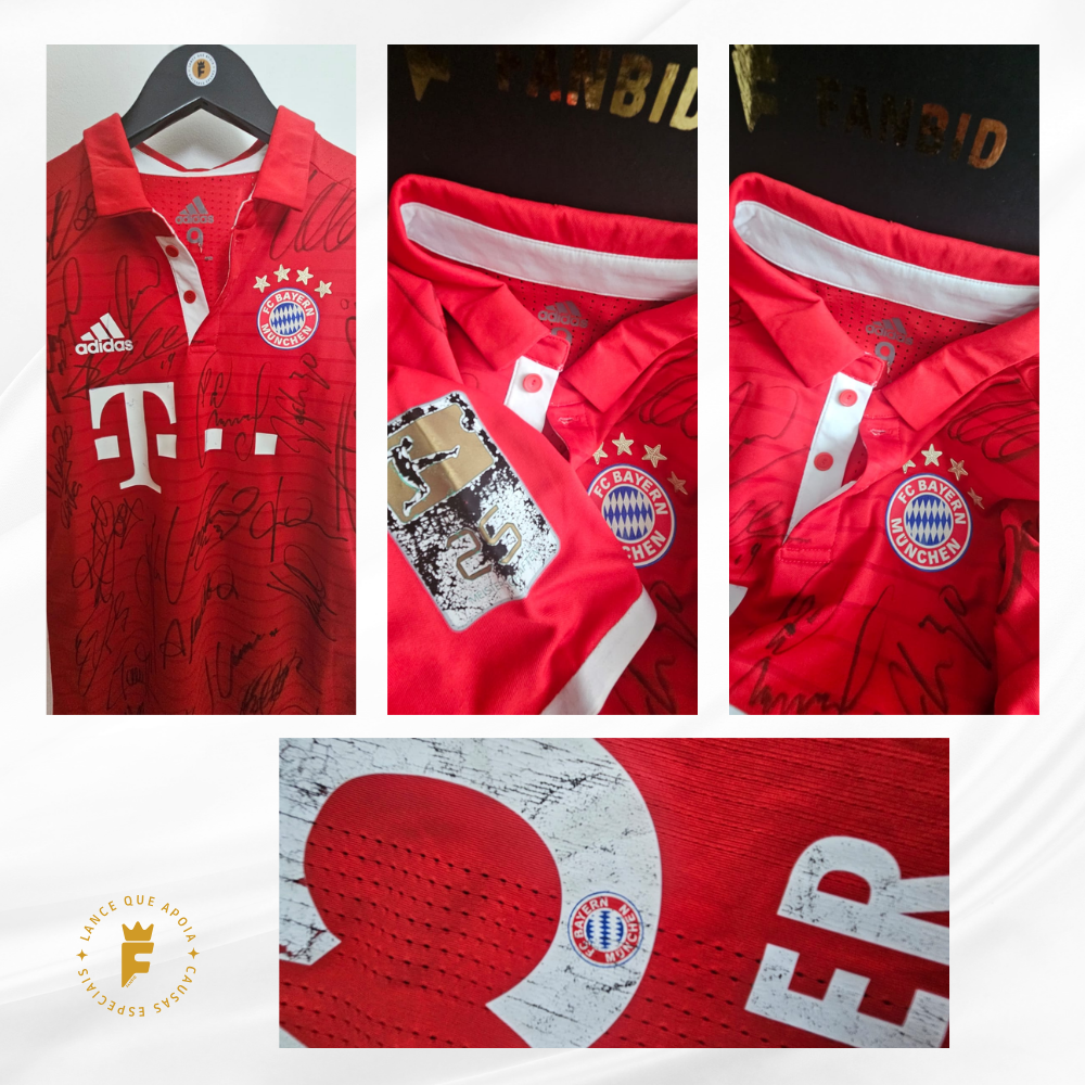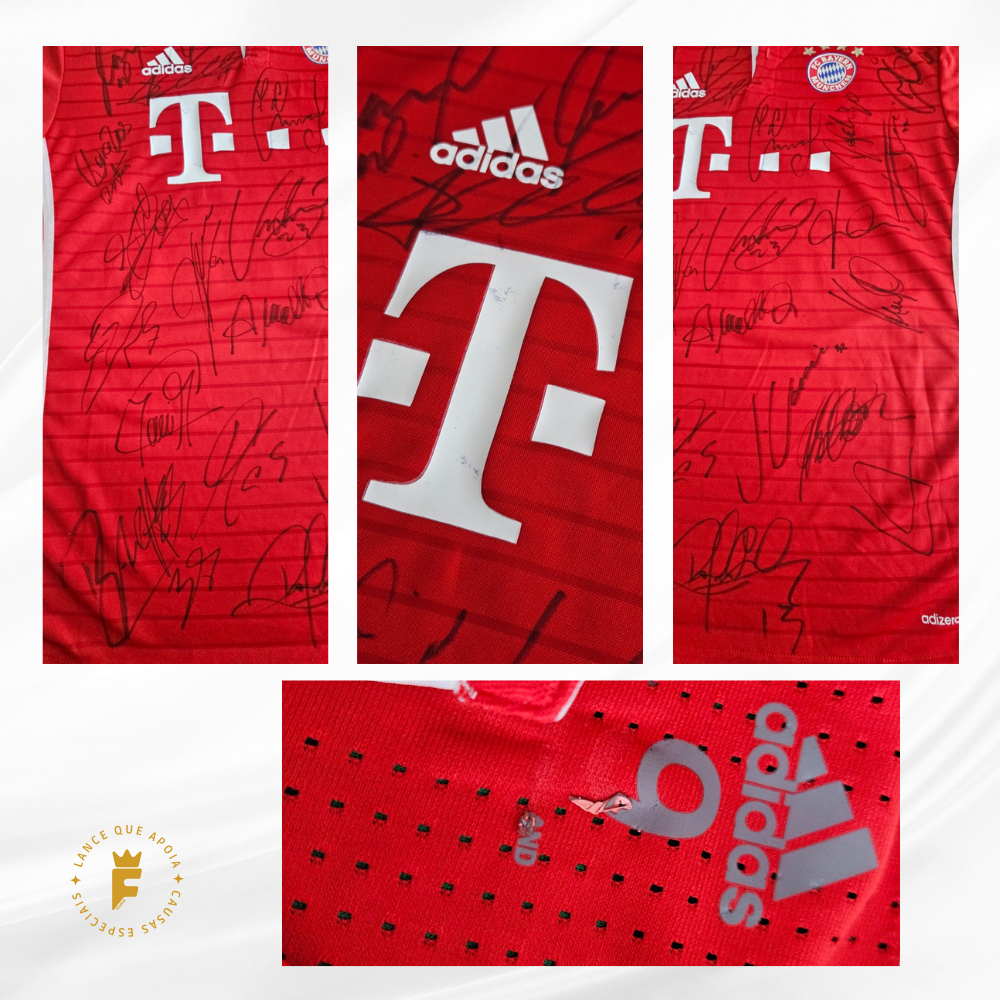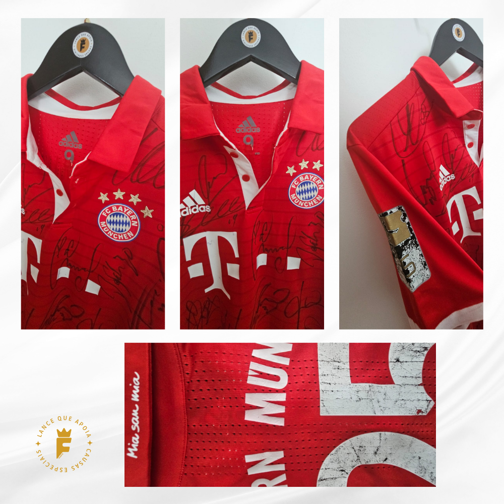 Autografada a mão por elenco campeão Neuer, Starke, Hummels, Boateng, Rafinha, Thiago Alcântara, Xabi Alonso, Lewandowski, Müller, Robben, Franck Ribéry, Douglas Costa, Kingsley, Coman, Vidal , Götze técnico Ancelotti entre outros e o