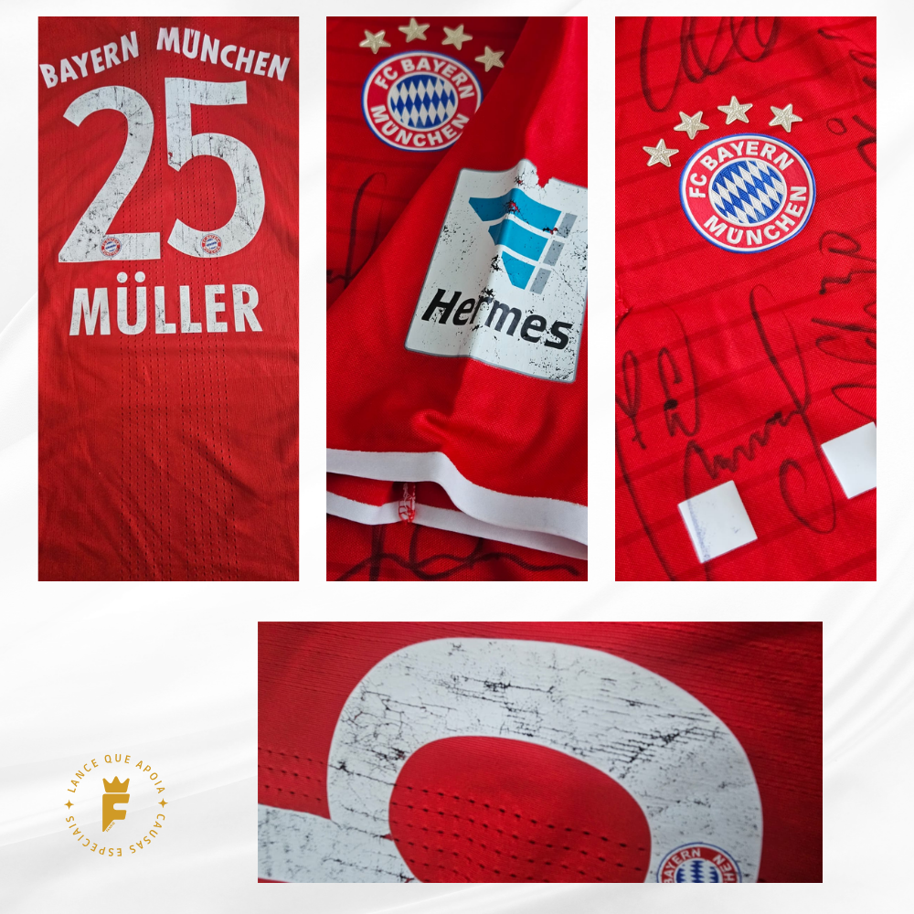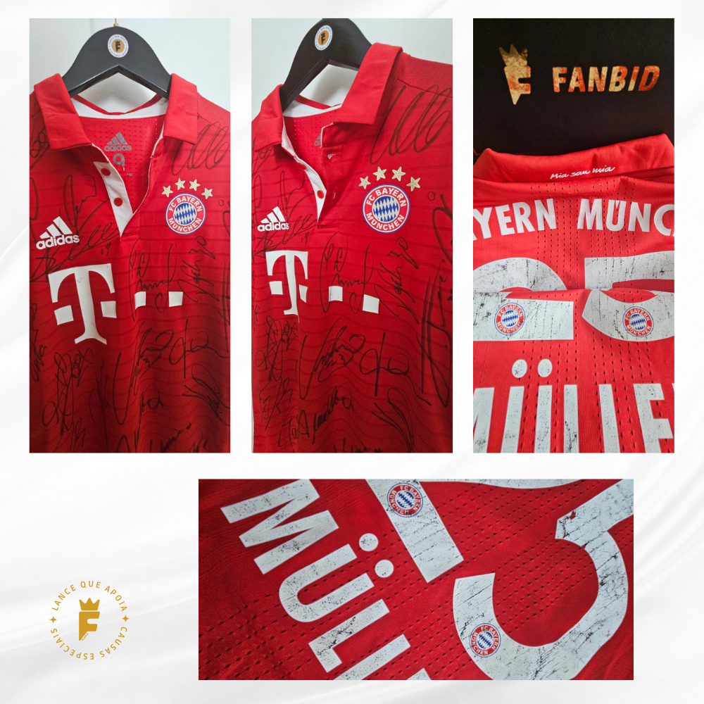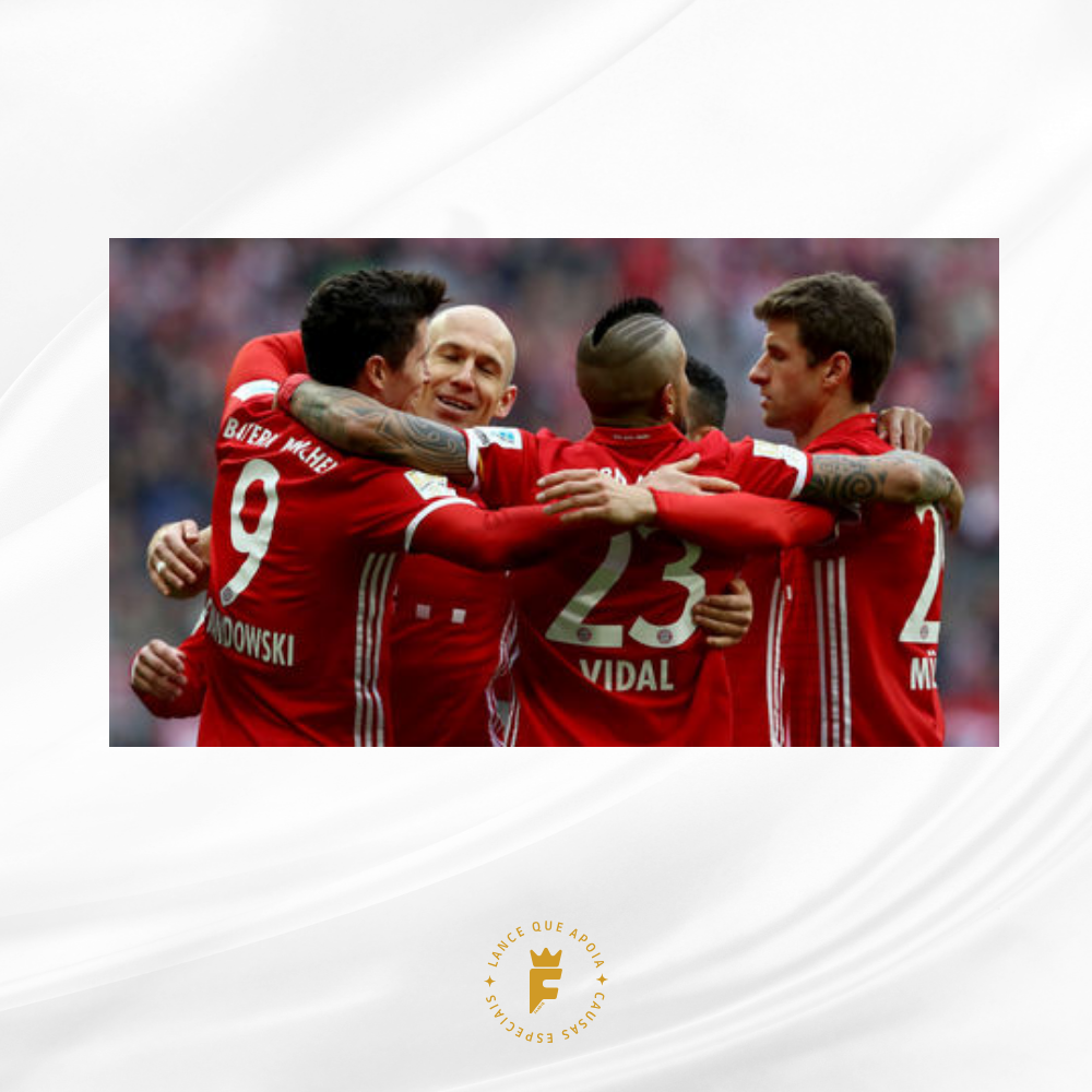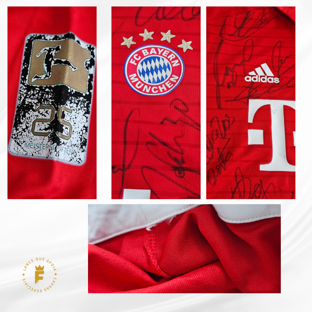 Autografada a mão por elenco campeão Neuer, Starke, Hummels, Boateng, Rafinha, Thiago Alcântara, Xabi Alonso, Lewandowski, Müller, Robben, Franck Ribéry, Douglas Costa, Kingsley, Coman, Vidal , Götze técnico Ancelotti entre outros e o
