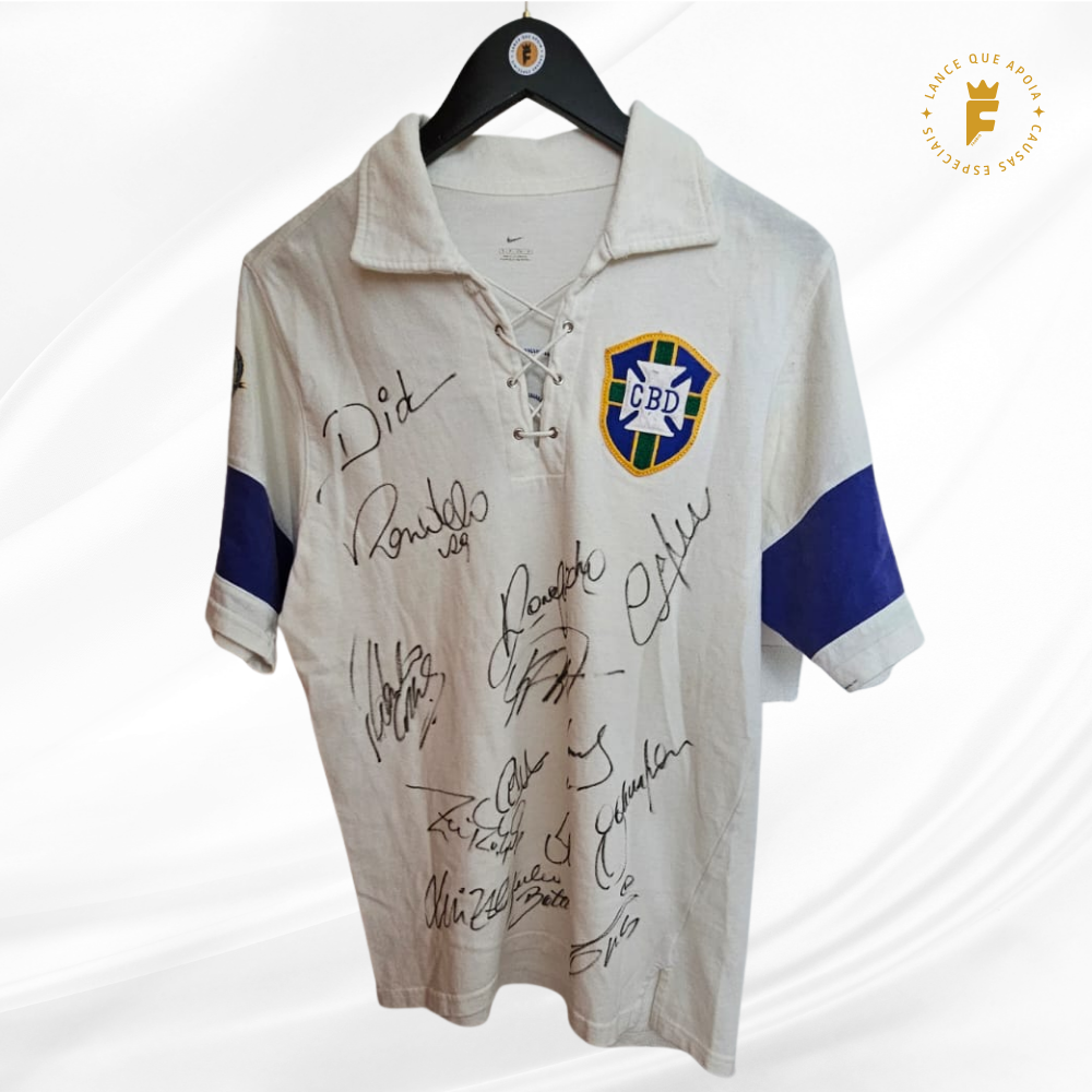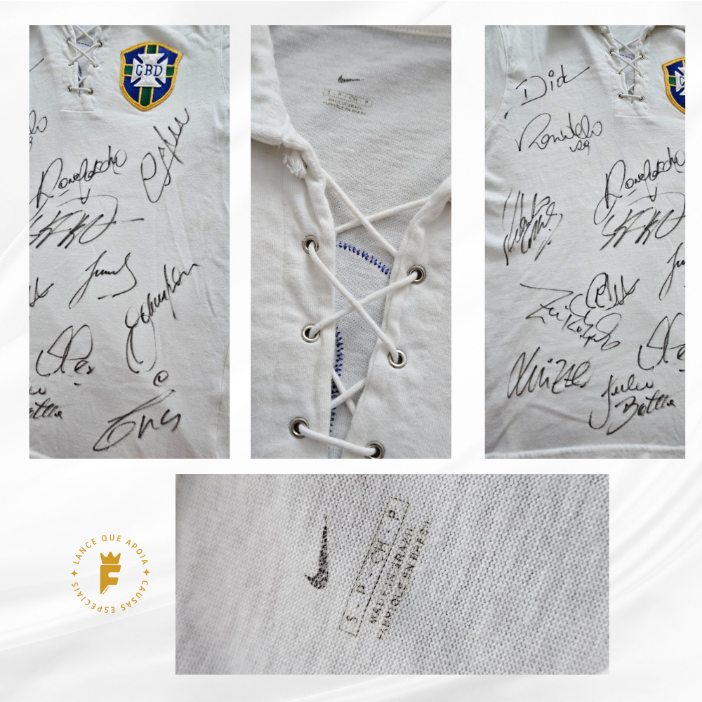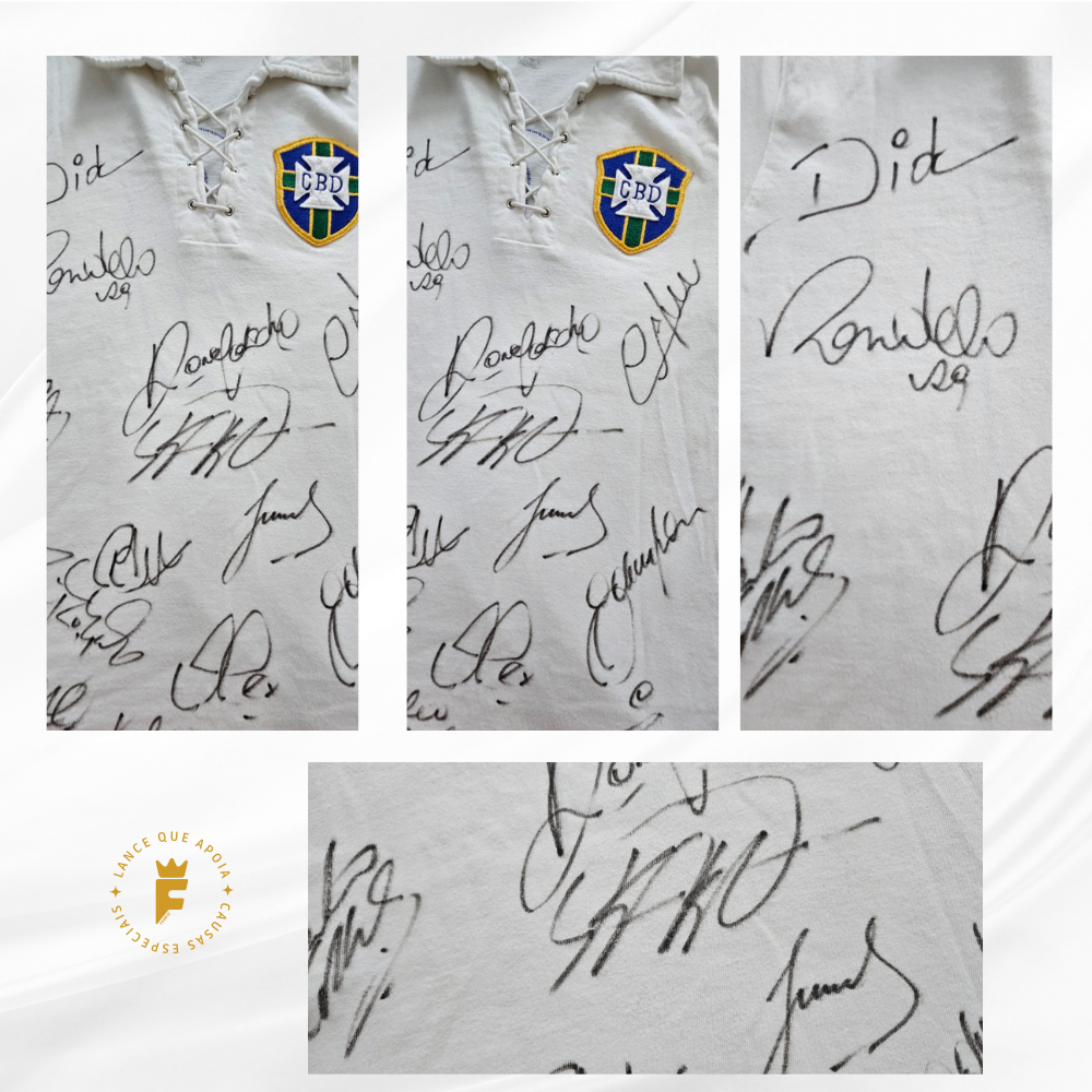 Autografada a mão por Dida, Ronaldo , Ronaldinho, Cafu, Kaka, Roberto Carlos, Juninho Pernambucano, Edmilson, Zé Roberto, Edu, Luisão, Julio Baptista, Cris e Alex