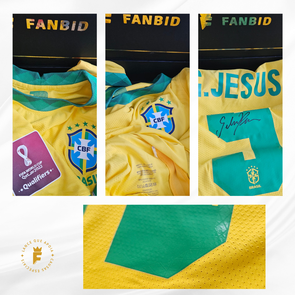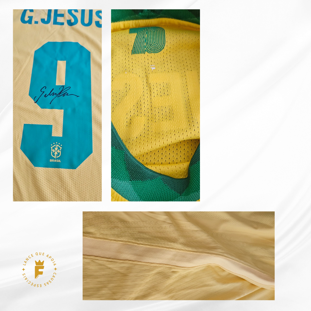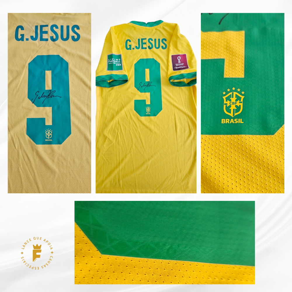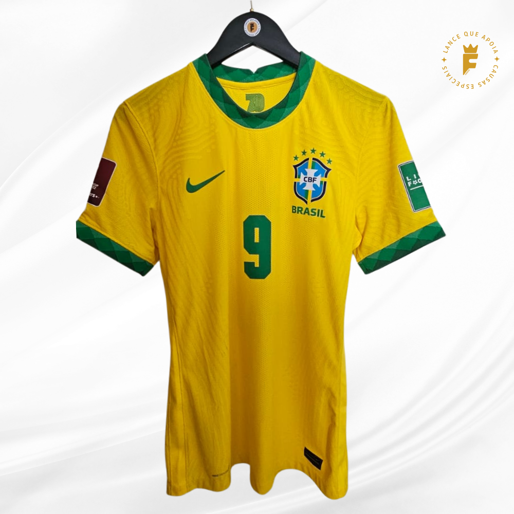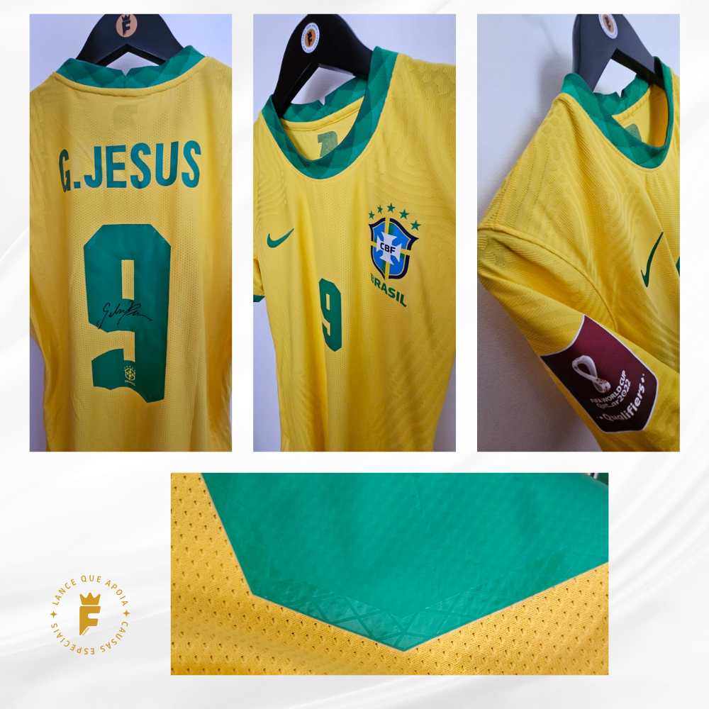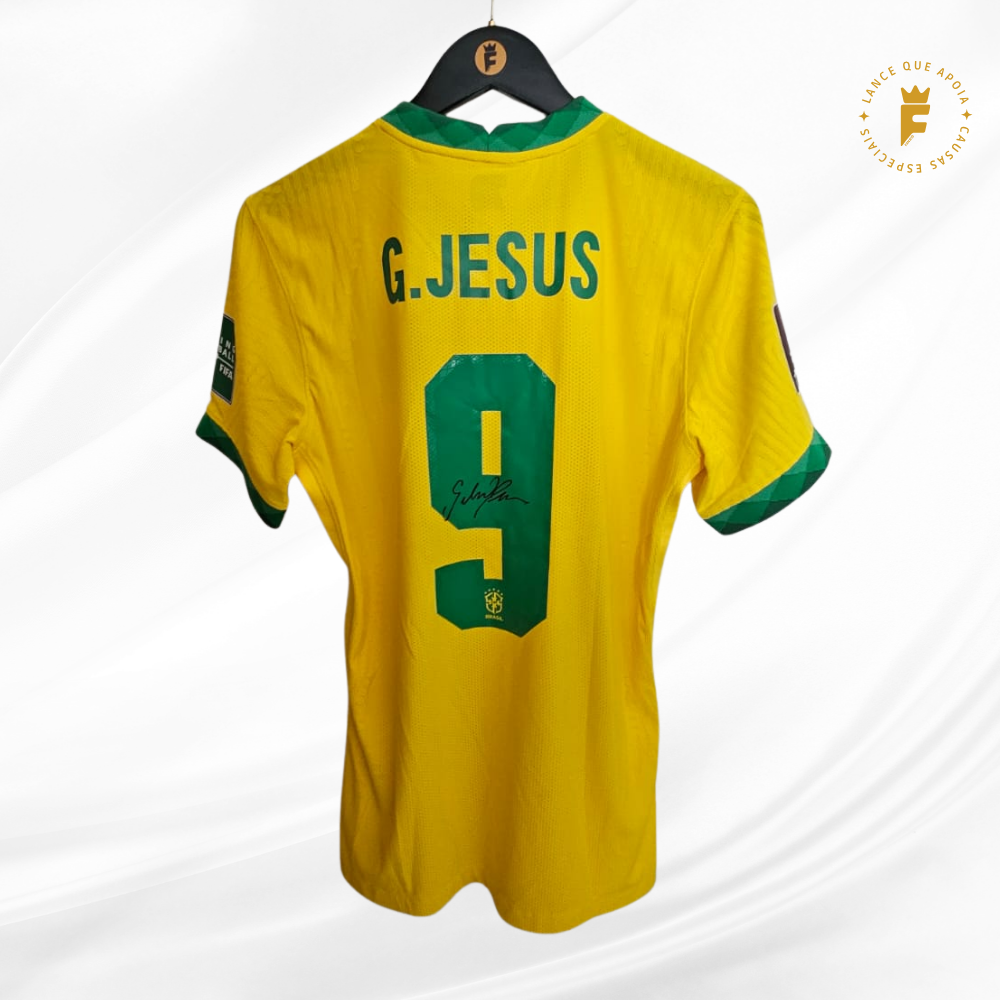 Camisa Brasil 2020-21, ver jogo, fase eliminatórias Qatar2022, N9 autografada Gabriel Jesus
