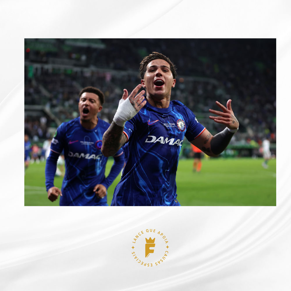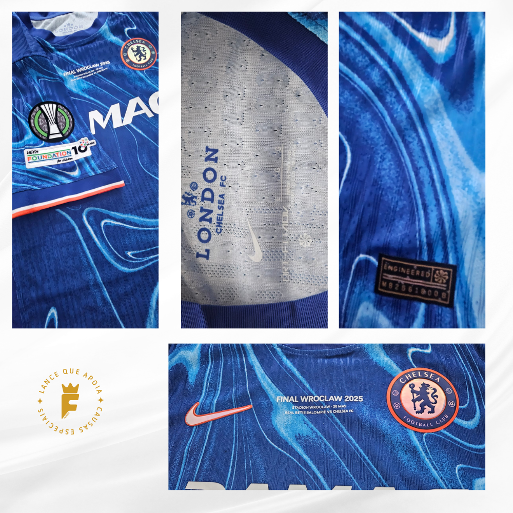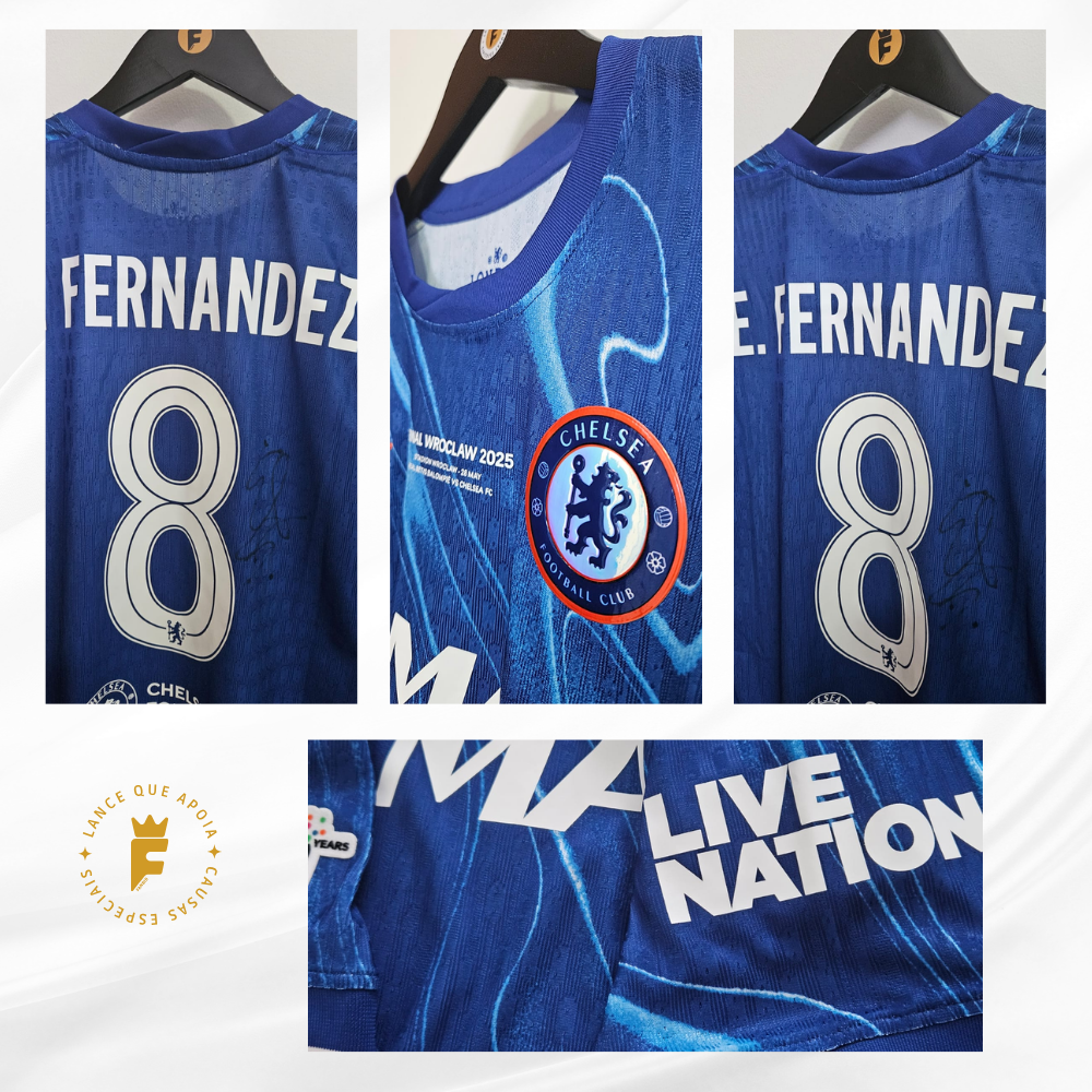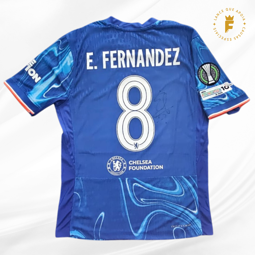 Camisa Chelsea 2024-5 vers jogador final UEFA Conference - campeão, autografada Enzo Fernandez
