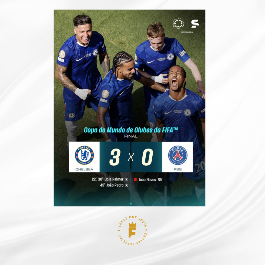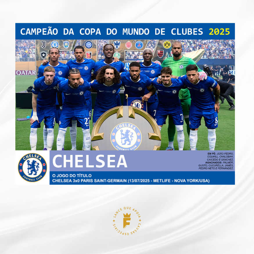 Jogo: O Chelsea Football Club sagrou-se o primeiro campeão do novo formato da Copa do Mundo de Clubes da FIFA 2025, realizada nos Estados Unidos. O time londrino conquistou o título ao derrotar o Paris Saint-Germain (PSG) por 3 a 0 na final, disputada no MetLife Stadium em 13 de julho de 2025.