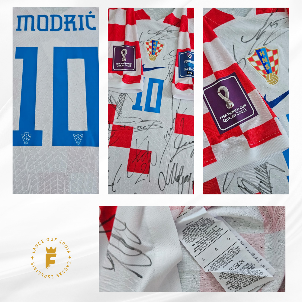 Camisa Croácia, Copa do Mundo 2022, vers jogador, N10, autografada elenco