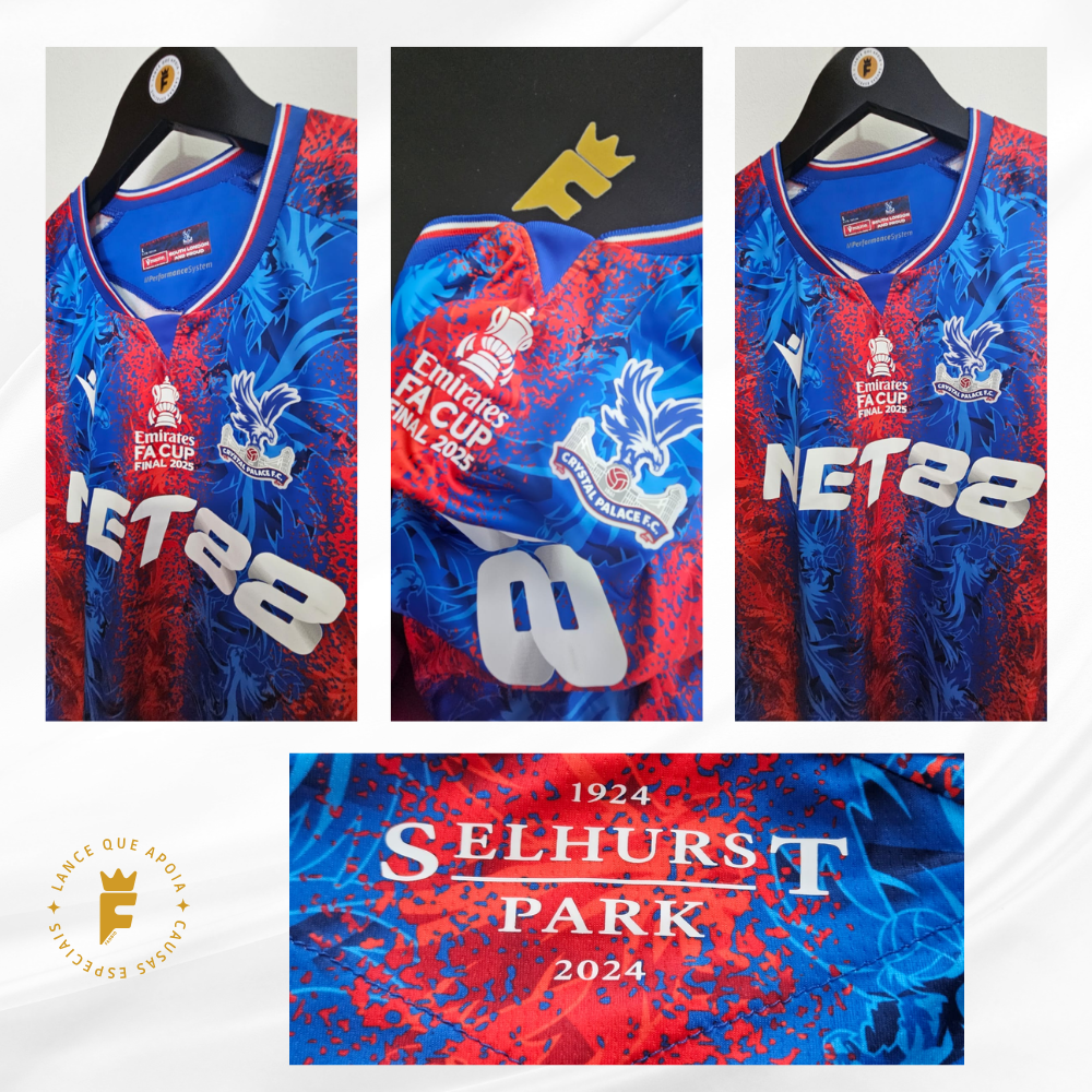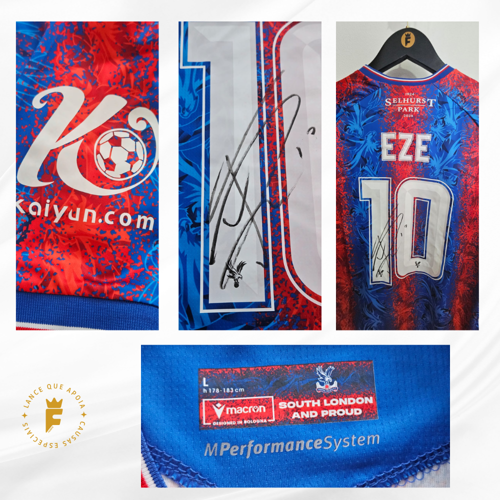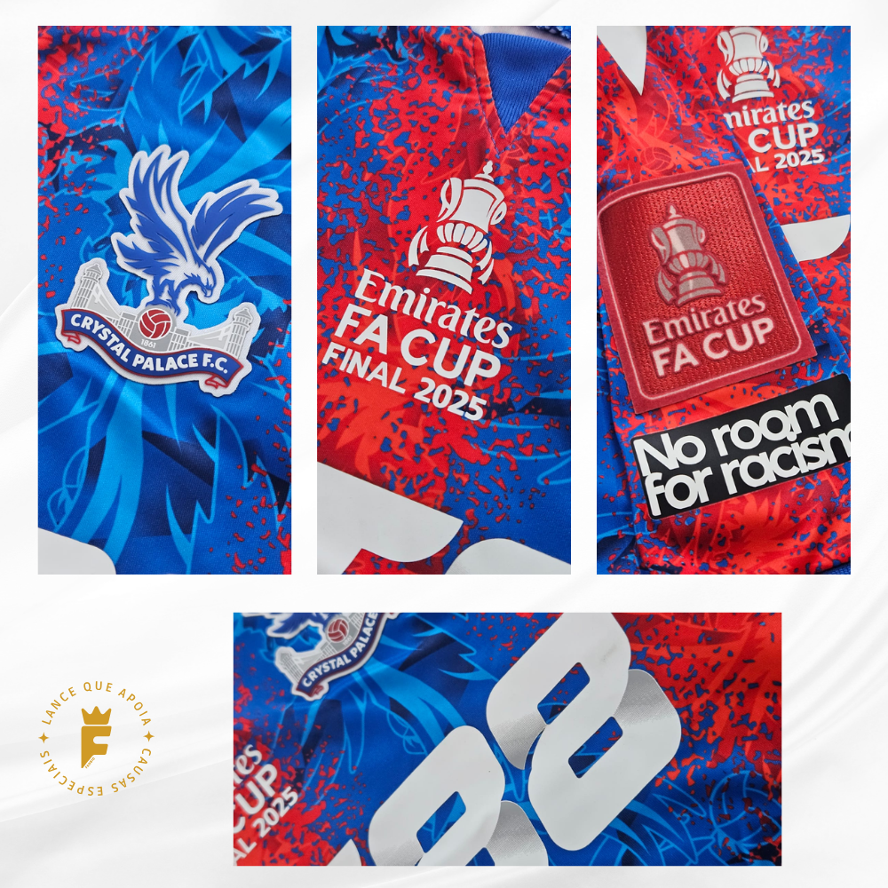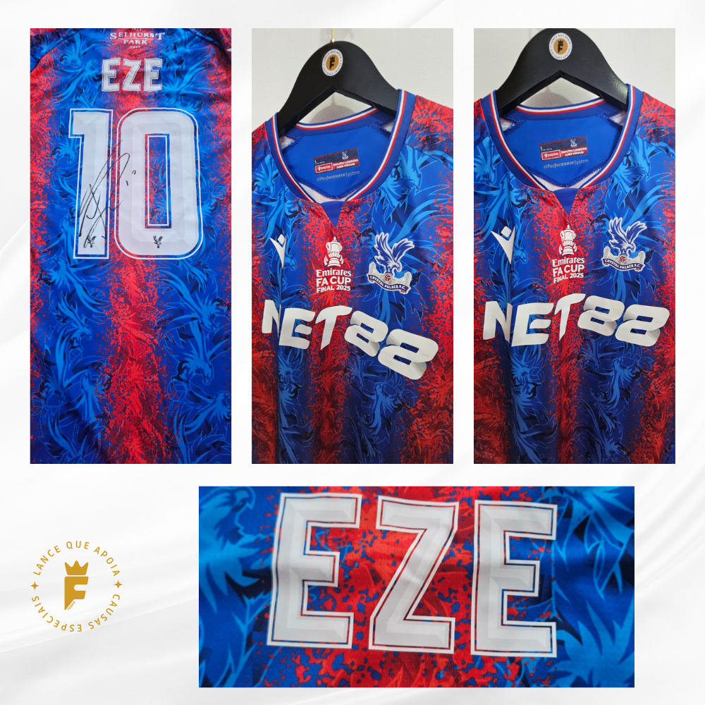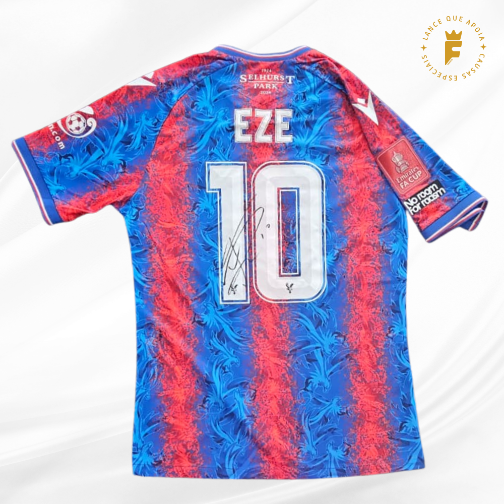 Camisa Crystal Palace 2024-25 vers jogo final Copa Inglaterra (campeão), autografada Eberechi Eze
