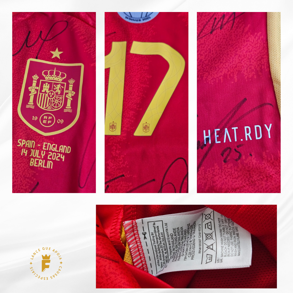 Camisa Espanha 2024 Final Eurocopa 24, vers jogador, N17, autografada elenco campeão