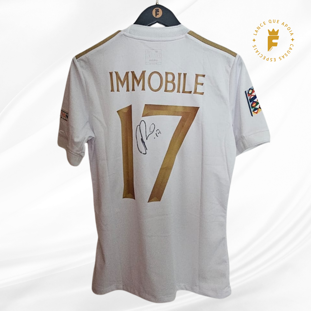 Camisa Itália 2023, Edição Especial 125 anos, vers jogo, N17 autografada Ciro Immobile