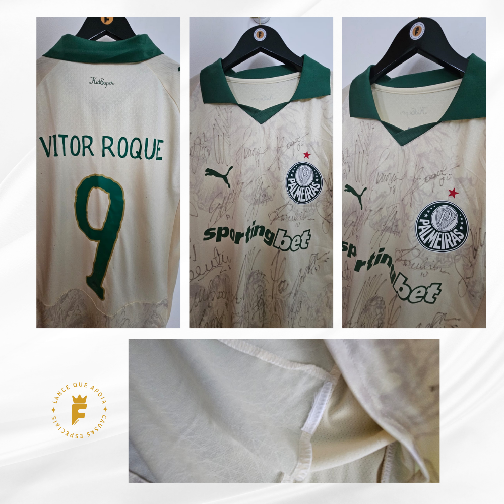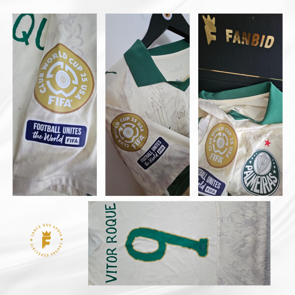 Autografada a mão por elenco do Palmeiras 2025 que estavam na copa, Estevão, Vitor Roque, Gomez, Rios, Allan, Piquerez, Fuchs, Martinez, Mauricio, Paulinho, Weverton, Marcos Rocha etc