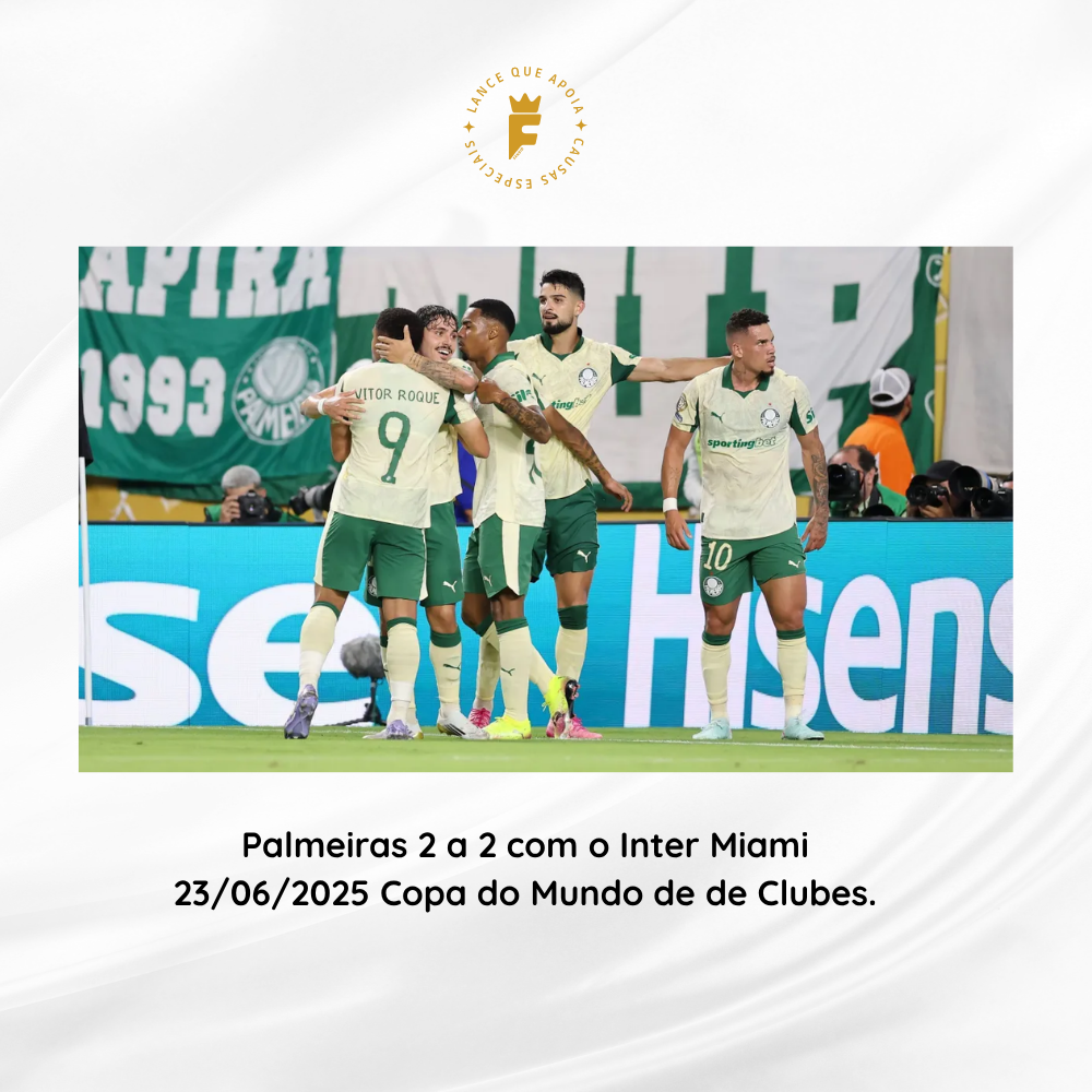 O resultado foi Palmeiras 2 a 2 Inter Miami. Com o empate emocionante, o Palmeiras, líder do Grupo A, e o Inter Miami avançaram juntos às oitavas de final da Copa do Mundo de Clubes, ambos com cinco pontos.