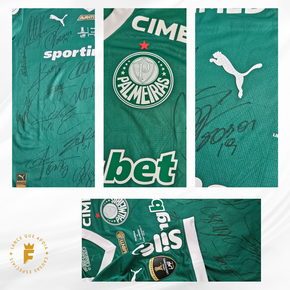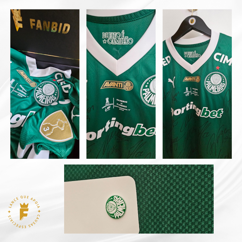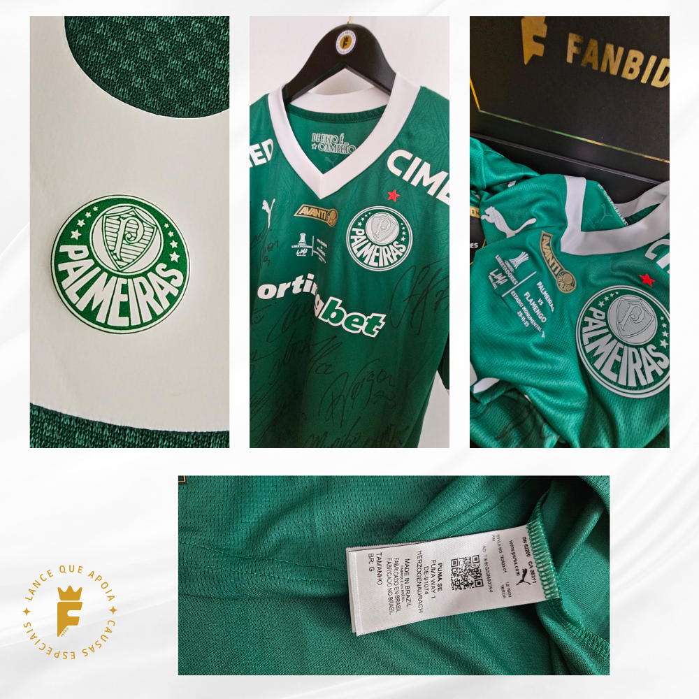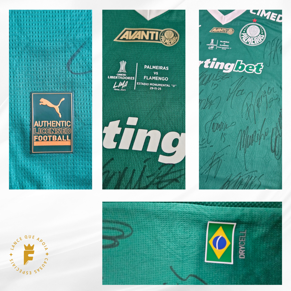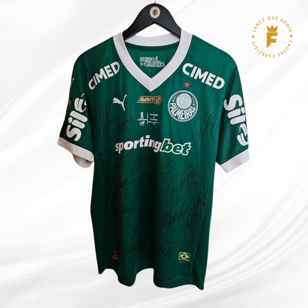 Camisa Palmeiras 2025, Final da Libertadores 2025, de jogo, autografada elenco