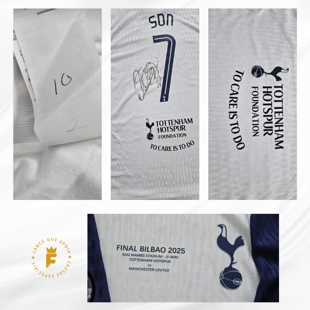 Camisa Tottenham Final UEFA Europa League 2024-25, vers jogador, N9 autografada Son, campeão