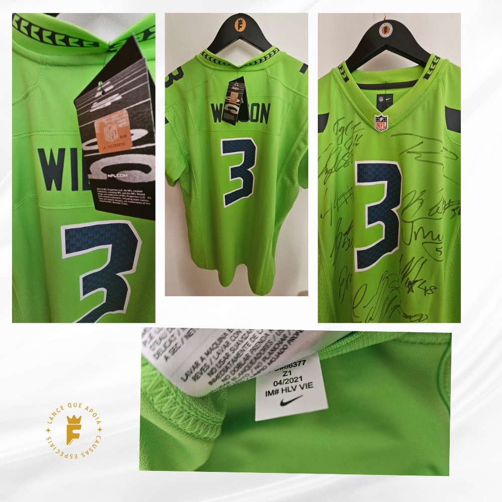 Camisa oficial NFL Seattle Seahawks 2021 Autografada 13 Jogadores do elenco