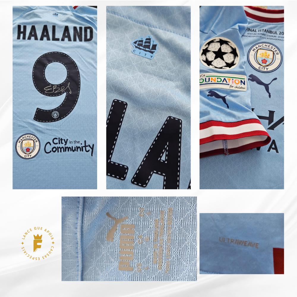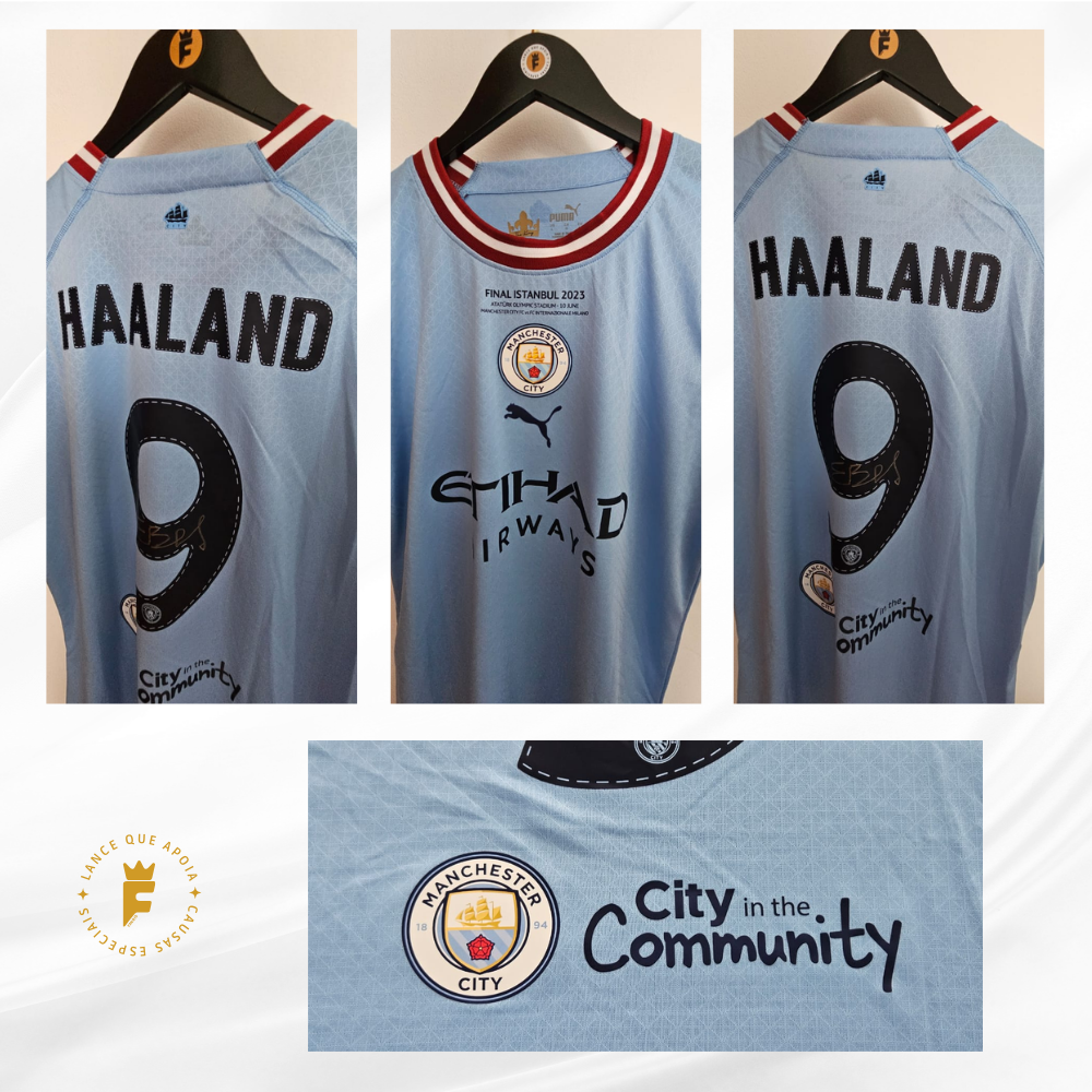 Manchester City 2022-23 , Final Champions League Campeão , vers jogador N9, autografada Haaland