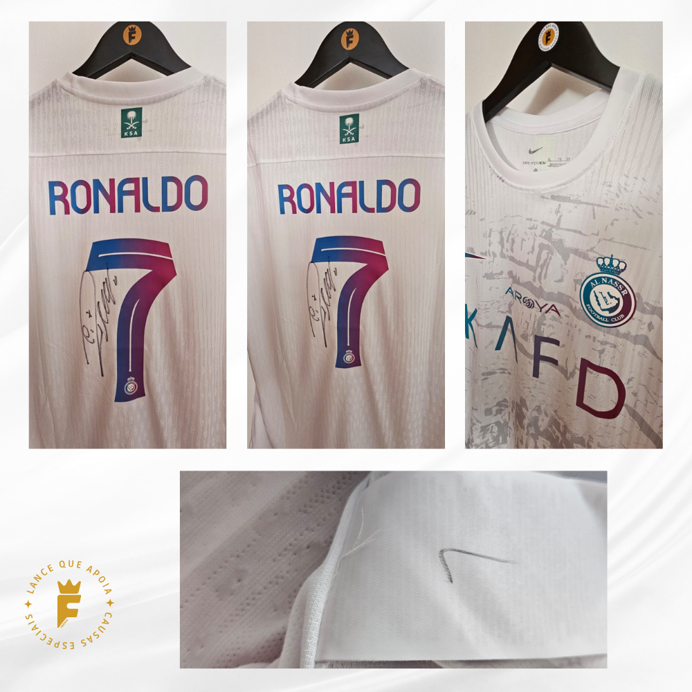 Camisa Al-Nassr 3, 2023 – 24, vers jogador, autografada Cristiano Ronaldo
