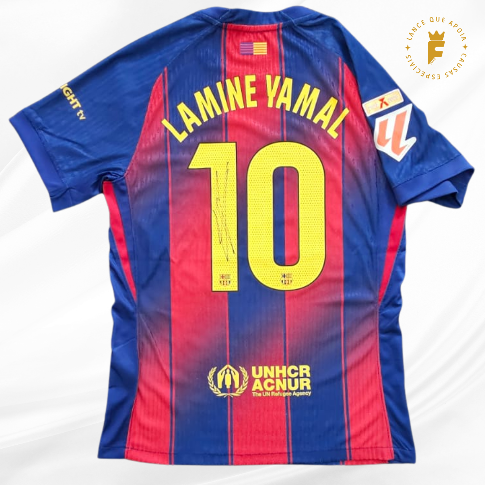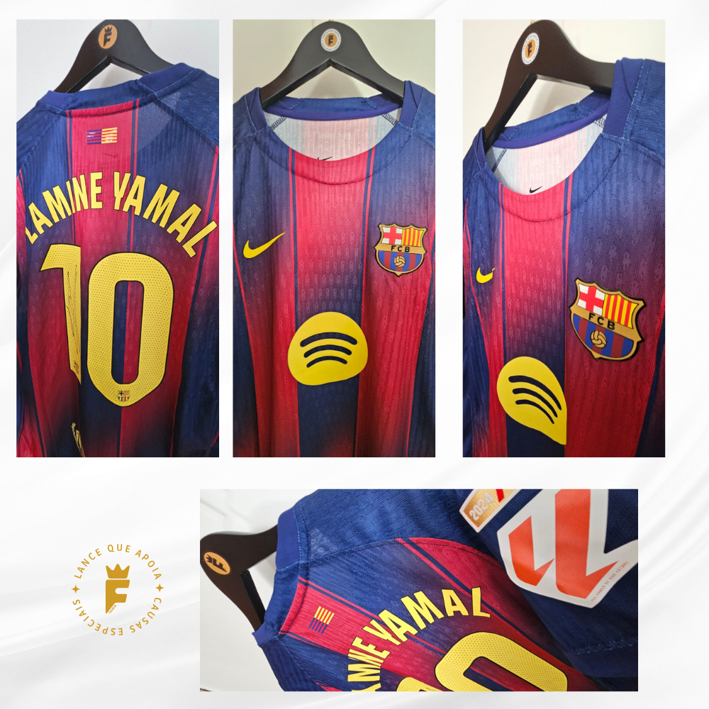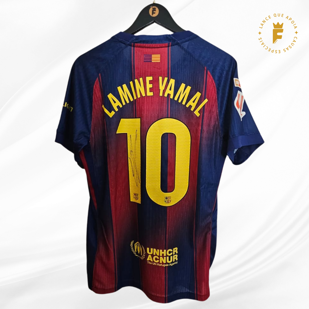 Camisa Barcelona I 2025 – 26 vers jogador autografada Lamine Yamal