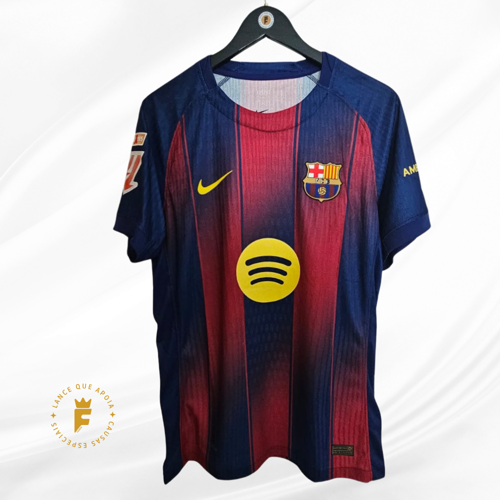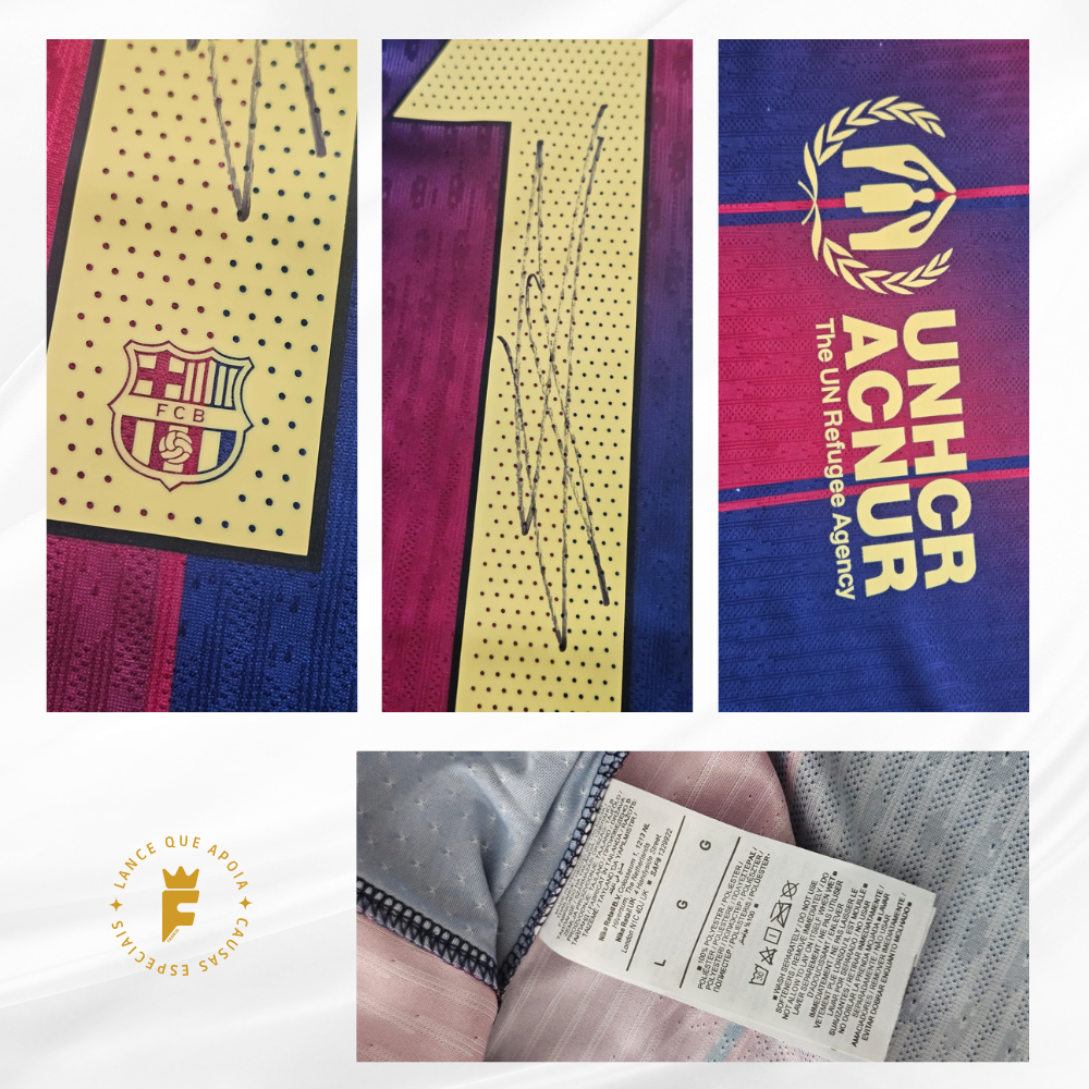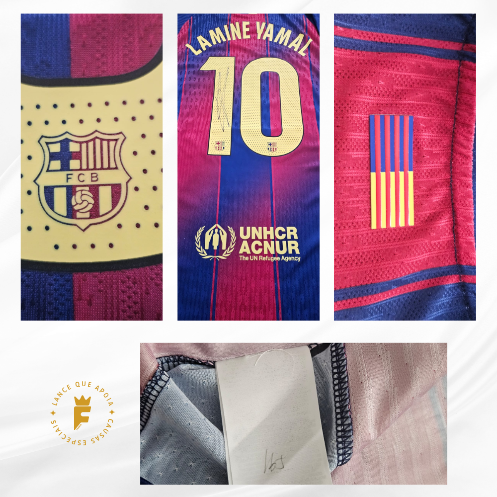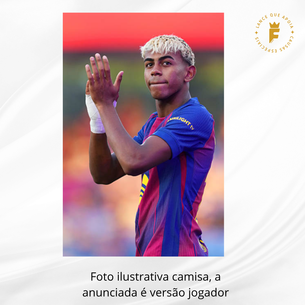 Camisa Barcelona I 2025 – 26 vers jogador autografada Lamine Yamal