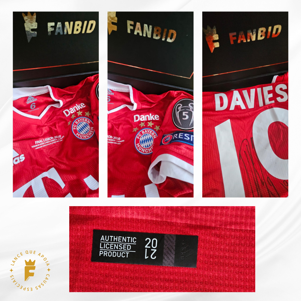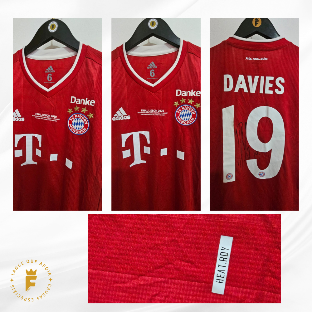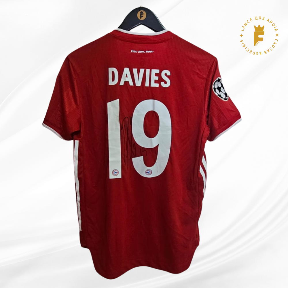 Camisa Bayern 2020-21, final Champions 2019-20 (Campeão), N19, vers jogo, autografada Davies