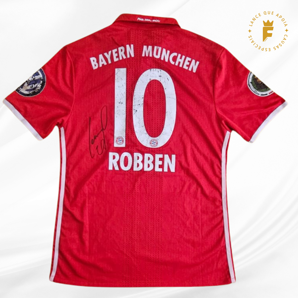 Apesar da camisa de ter o kit de camisa de jogo preparada, Arjen Robben não jogou a final da Copa da Alemanha (DFB-Pokal) contra o Borussia Dortmund em 21 de maio de 2016. O motivo: Robben estava afastado devido a uma lesão persistente na virilha/adutores, que o manteve de fora da reta final da temporada 2015/2016. O jogo: A final ocorreu no Estádio Olímpico de Berlim, e o Bayern de Munique venceu o Borussia Dortmund nos pênaltis (4-3) após um empate em 0 a 0 no tempo normal e prorrogação. Apesar da ausência de Robben, o Bayern de Munique conquistou o título da Copa da Alemanha 2015-16, garantindo a dobradinha nacional sob o comando de Pep Guardiola naquele ano. Robben estava presente, foi para o campo comemorar com o elenco.
