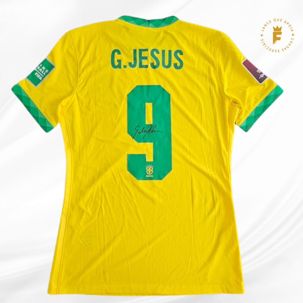 Camisa Brasil 2020-21, ver jogo, fase eliminatórias Qatar2022, N9 autografada Gabriel Jesus