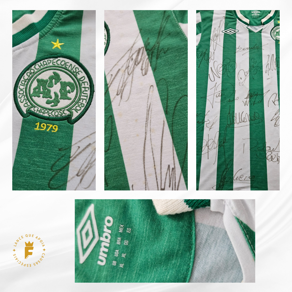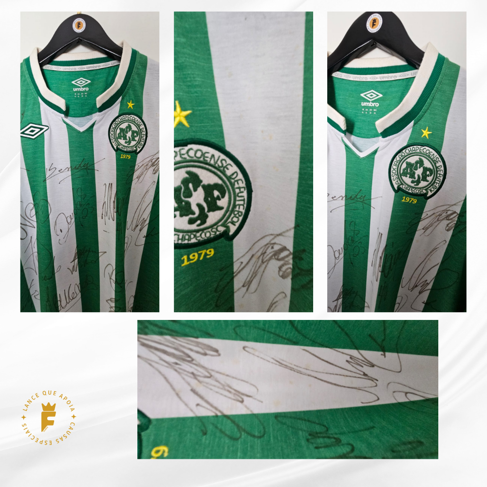 Camisa Chapecoense 1979-2012 Umbro Retrô autografada elenco 2016