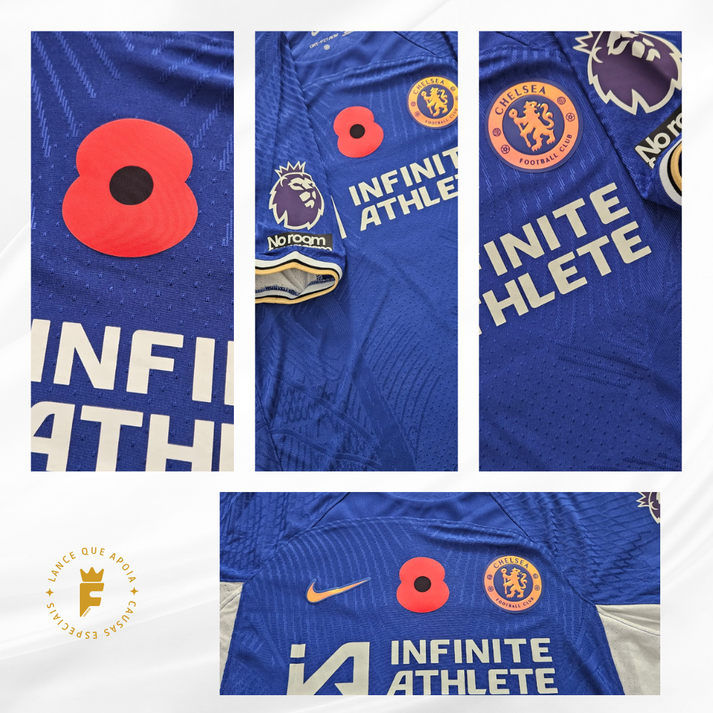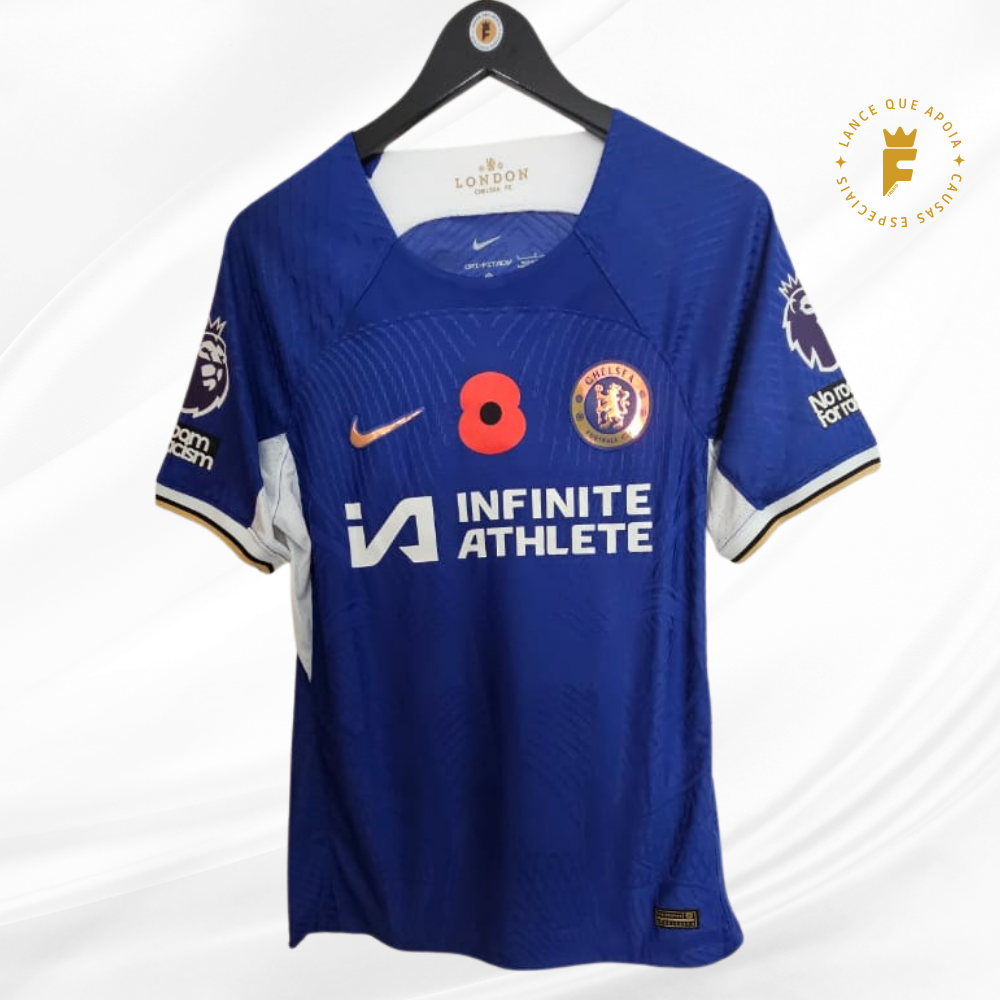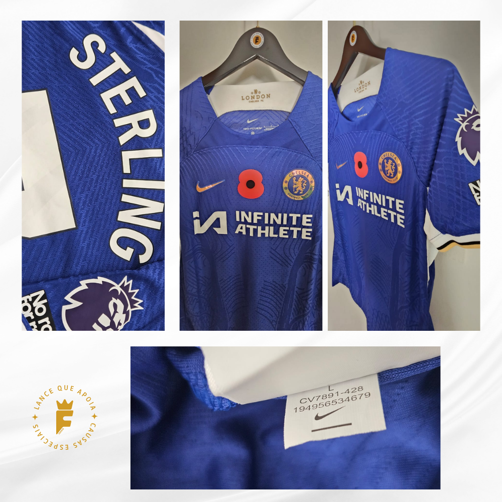 Camisa Chelsea 2023- 2024 Poppy Day, vers jogador autografada Sterling
