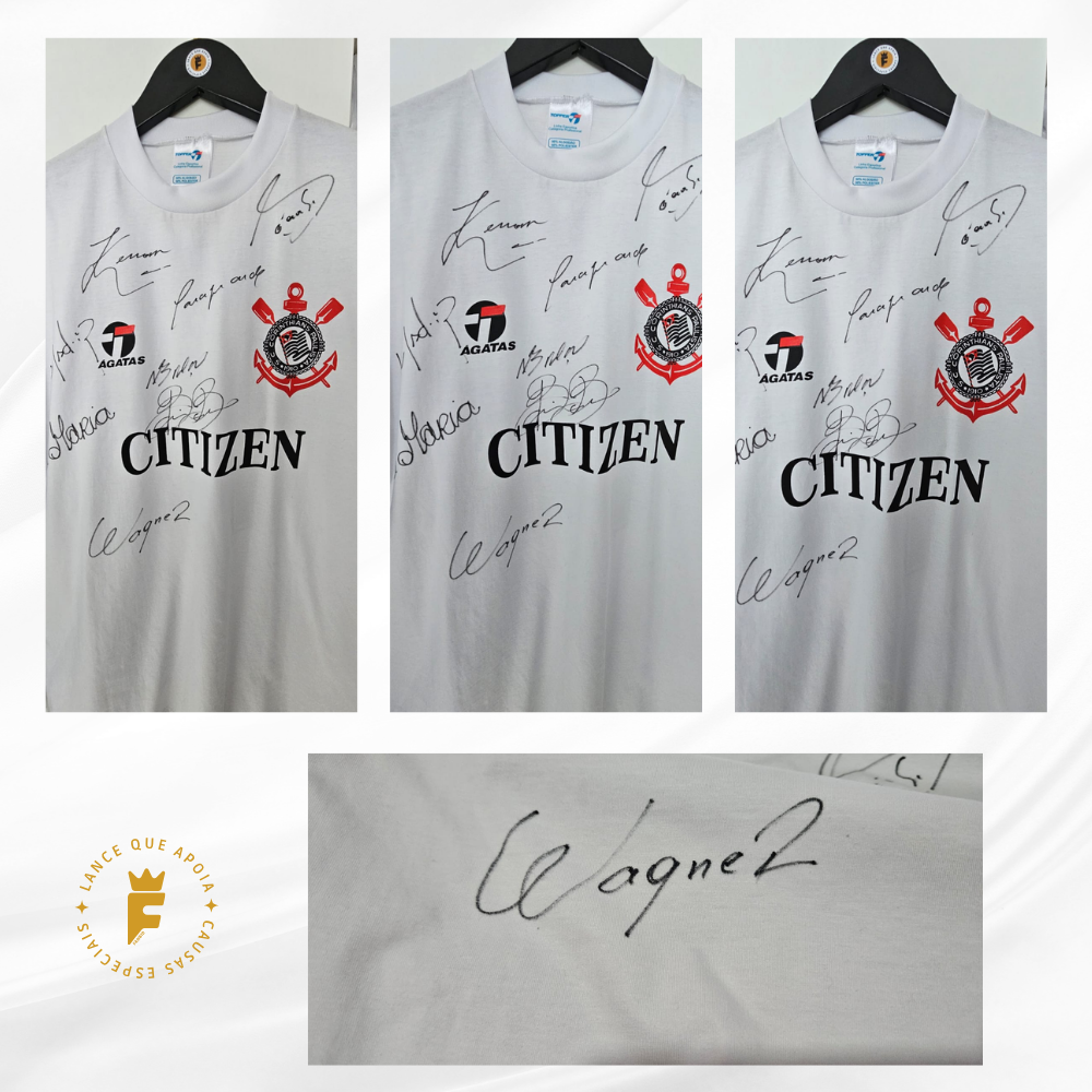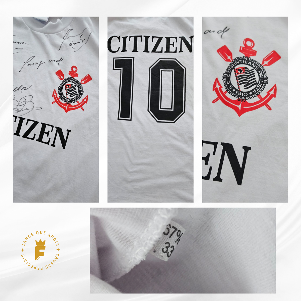 Autografada a mão por Sócrates, Zé Maria, Zenon, Biro Biro(escreveu abraço em cima da assinatura), Casagrande , Wagner, Wladimir