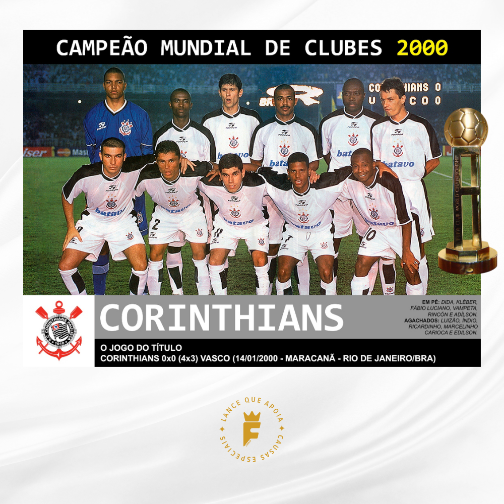 Em 2000, o Corinthians conquistou o primeiro Campeonato Mundial de Clubes da Federação Internacional de Futebol (FIFA). O torneio inaugural aconteceu no Brasil e teve partidas disputadas em São Paulo e no Rio de Janeiro. Além do Timão, outros sete clubes fizeram parte da competição.