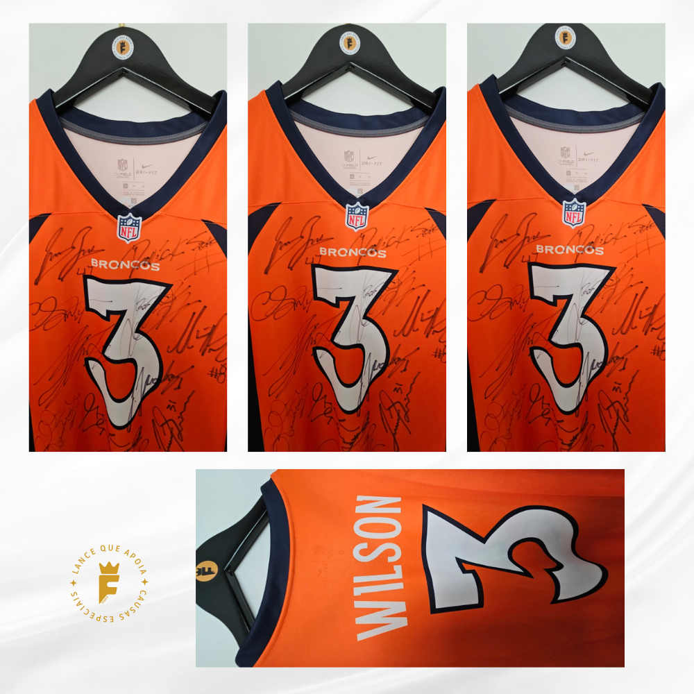 Camisa Denver Broncos 2022 N3 autografada 11 jogadores do elenco.