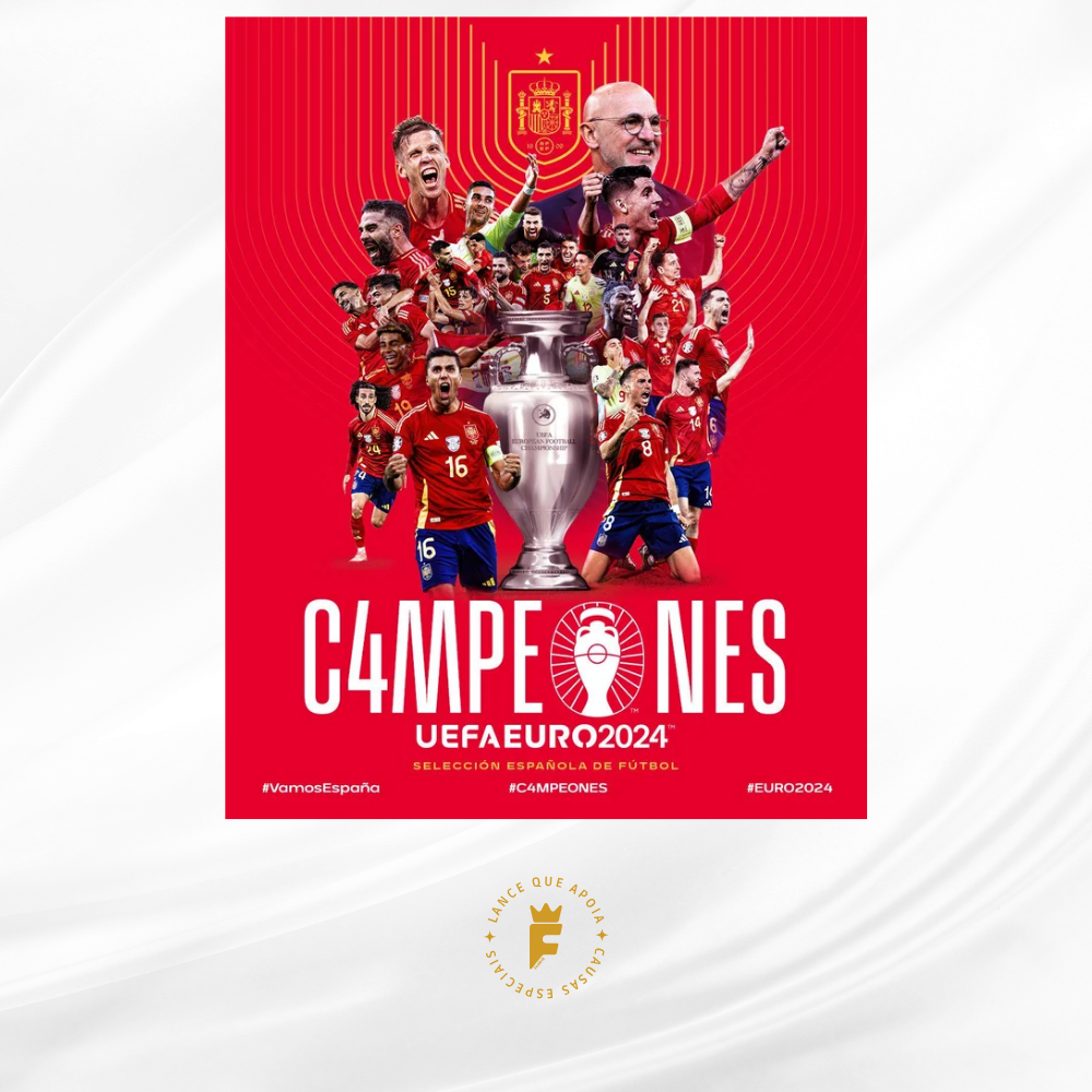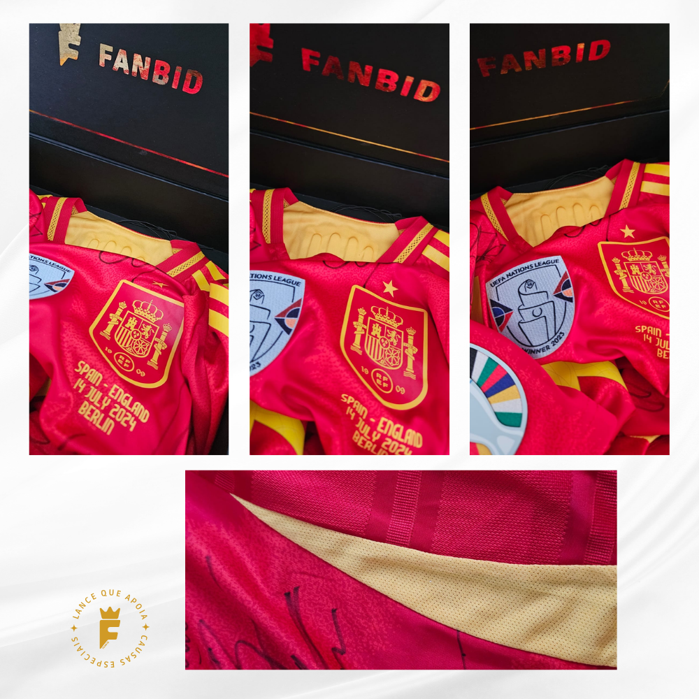 Autografada a mão elenco campeão Euro 2024 Nico Williams, Rodri, Lamine Yamal, Cucurella, Fabián Ruiz, Dani Olmo, Unai Simón, Carvajal, Le Normand, Laporte, Fabián Ruiz, Morata, Oyarzabal, Merino, Nacho, Zubimendi, Ferran Torres, Álex Baena, entre outros.