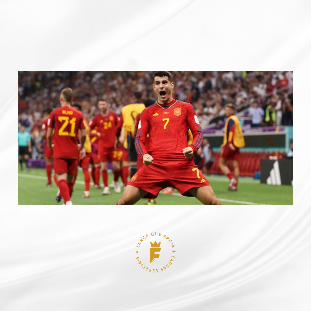 Camisa jogo Espanha 1 x 1 Alemanha Copa do Mundo FIFA 2022, 27/11/2022 Al Bayt Stadium, Catar - Centroavantes entram e marcam no empate entre Espanha e Alemanha, Gol: Álvaro Morata (17 min do 2º tempo), pela Espanha, e Niclas Füllkrug (38 min do 2º tempo), pela Alemanha