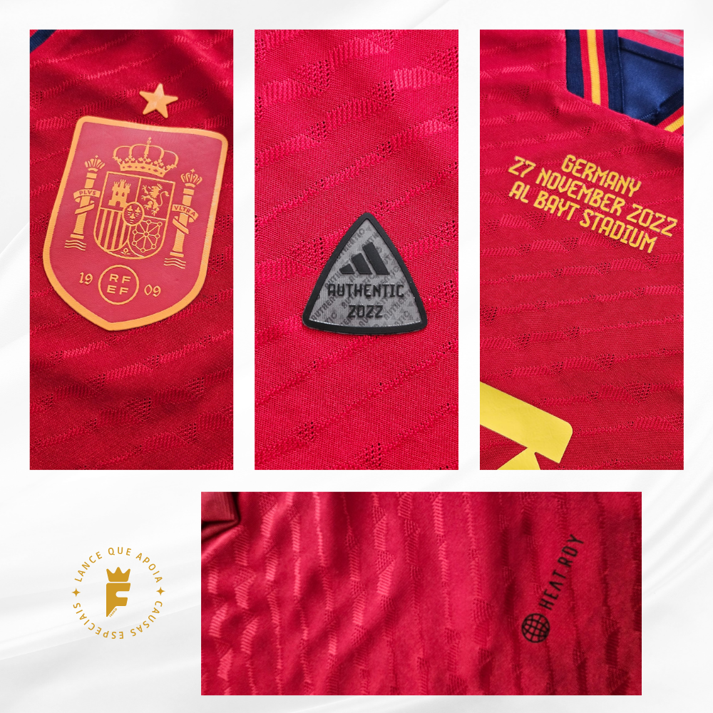 Versão jogador com numeração oficial, patches da copa e match date da partida Espanha 1 x 1 Alemanha Copa do Mundo FIFA 2022, 27/11/2022