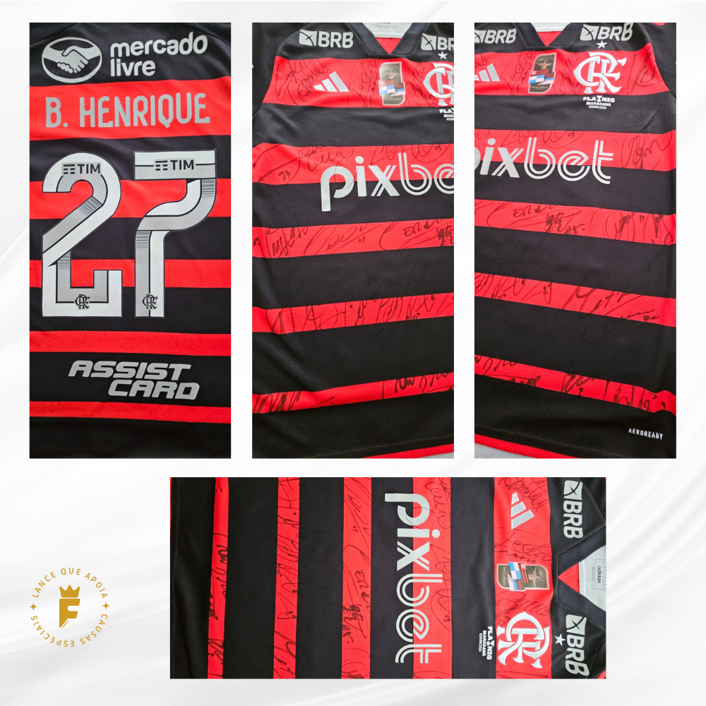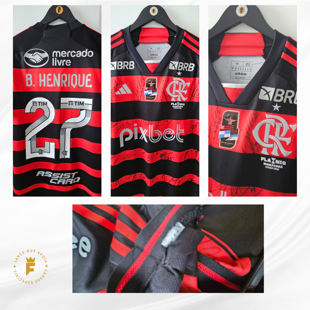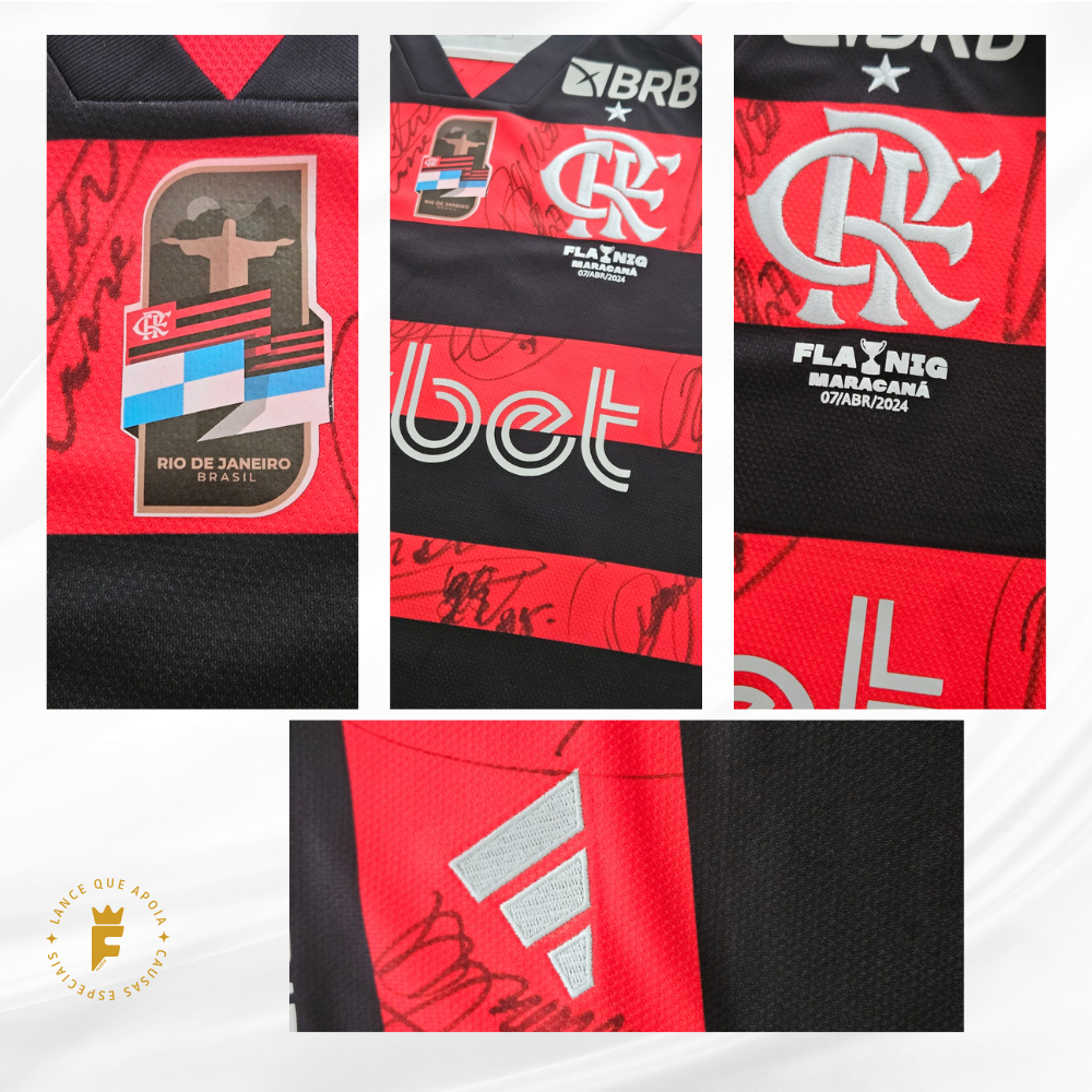 Camisa Flamengo, vers jogo, Final Carioca 2024 autografada elenco campeão