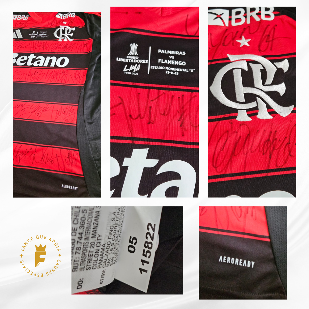 Camisa Flamengo 2025-26, N3– Final Libertadores 2025– Autografada pelo Elenco – Tetracampeão