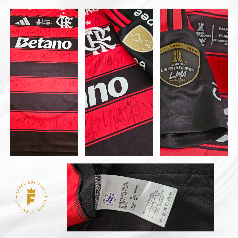 Autografada a mão por elenco Tetracampeão da Libertadores 2025, Brasileirão 2025, boa parte do carioca e Supercopa 2025.