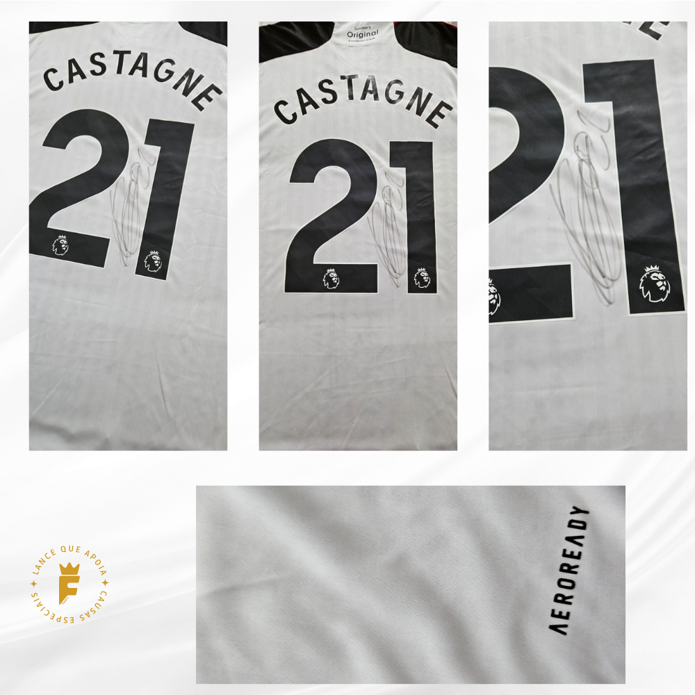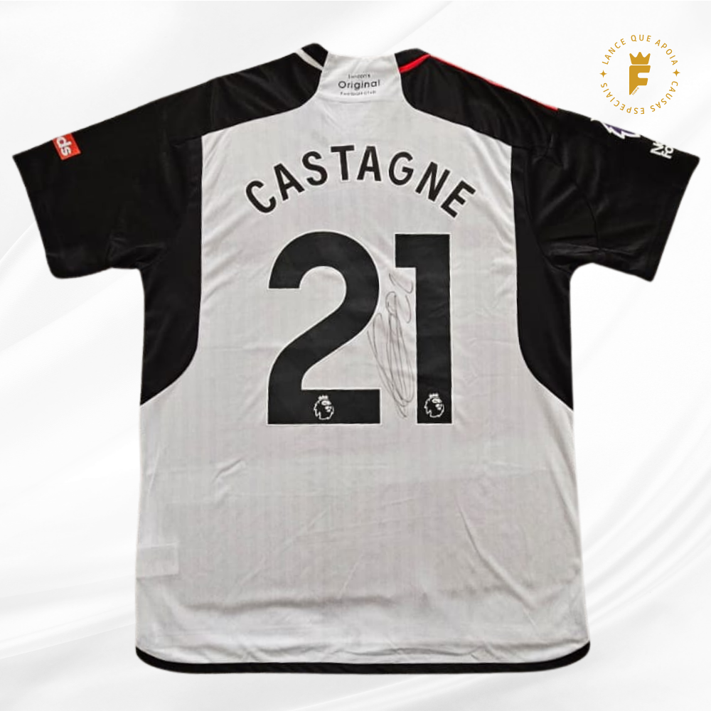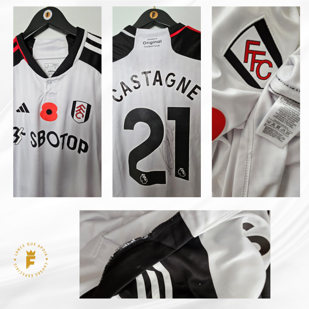Camisa Fulham 2023-24, ver jogador, Poppy Day, autografada Castagne