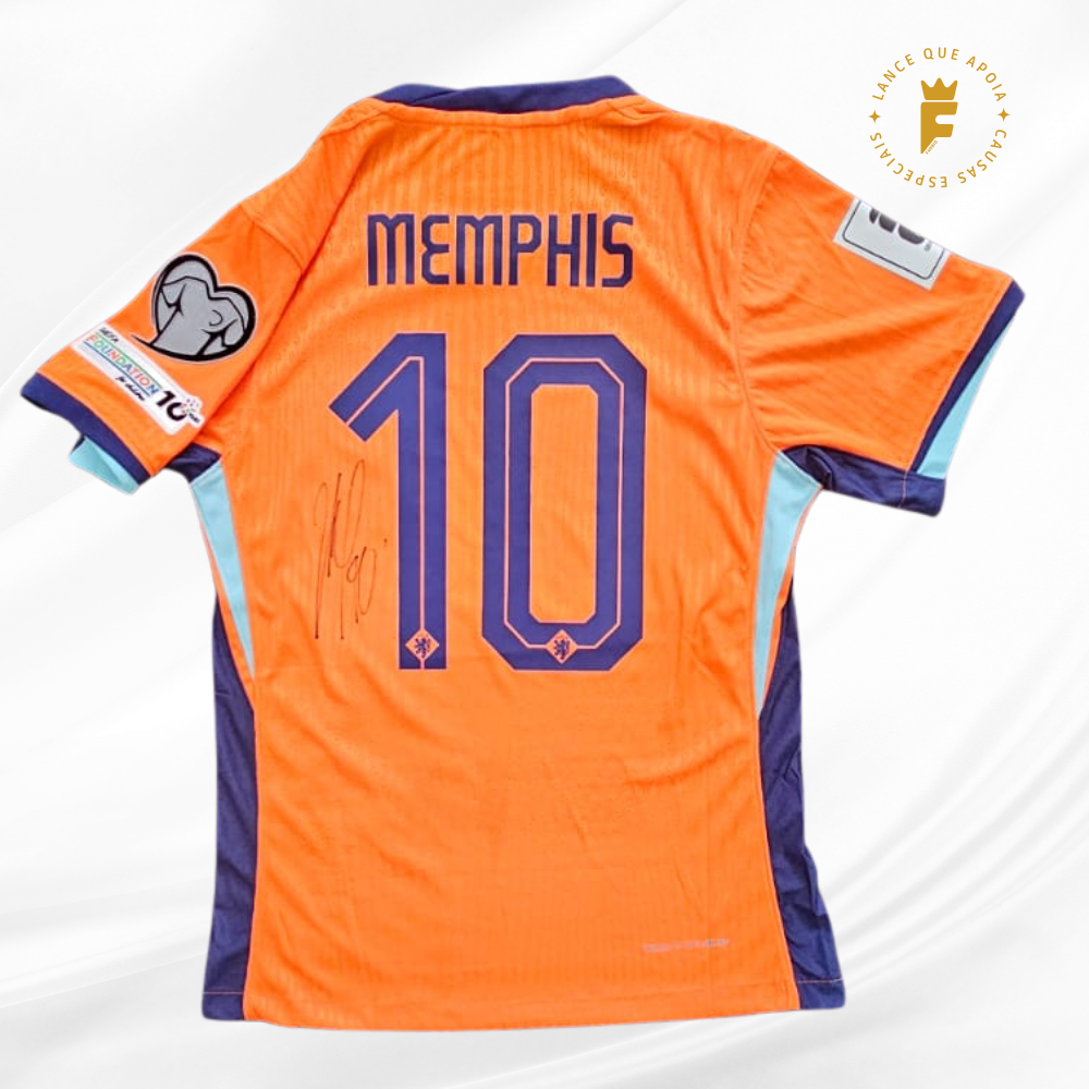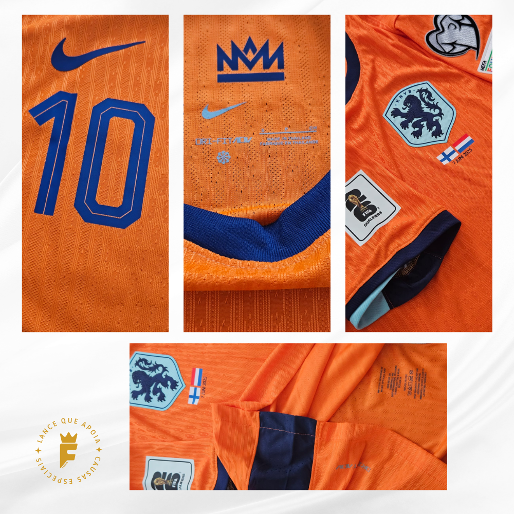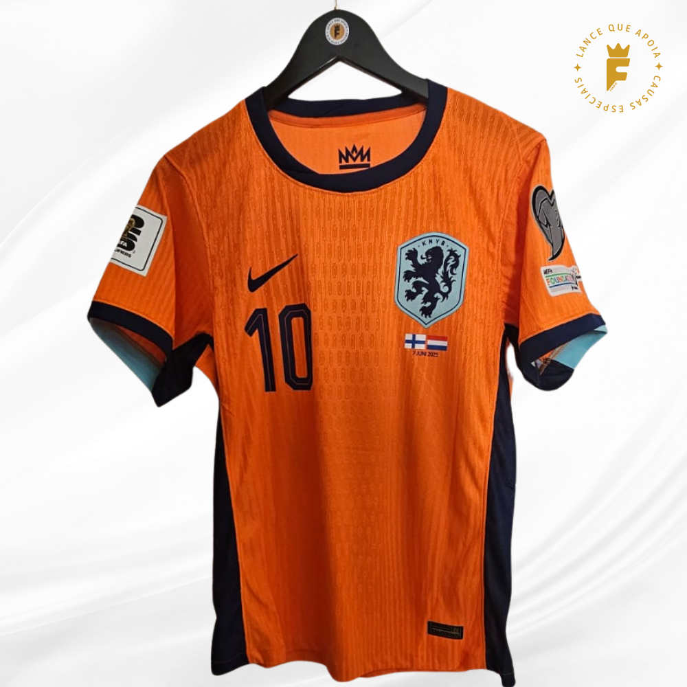 Camisa Holanda 2025 Eliminatórias Copa, de jogo, N10 autografada Memphis