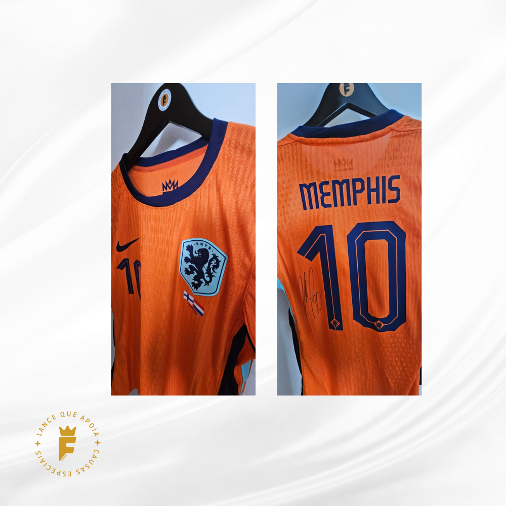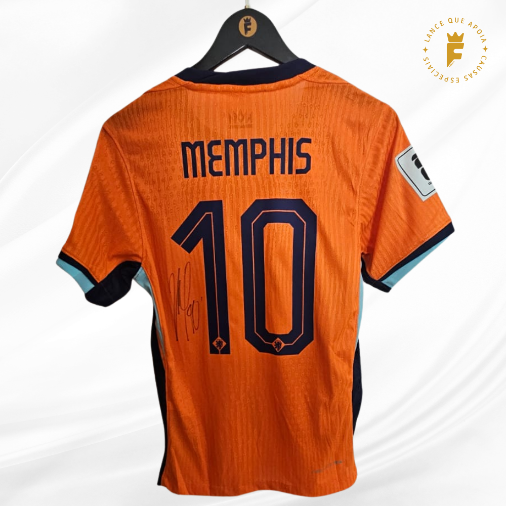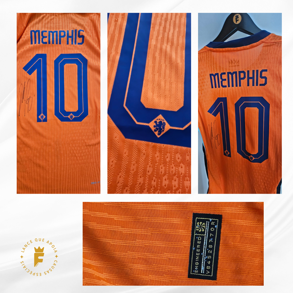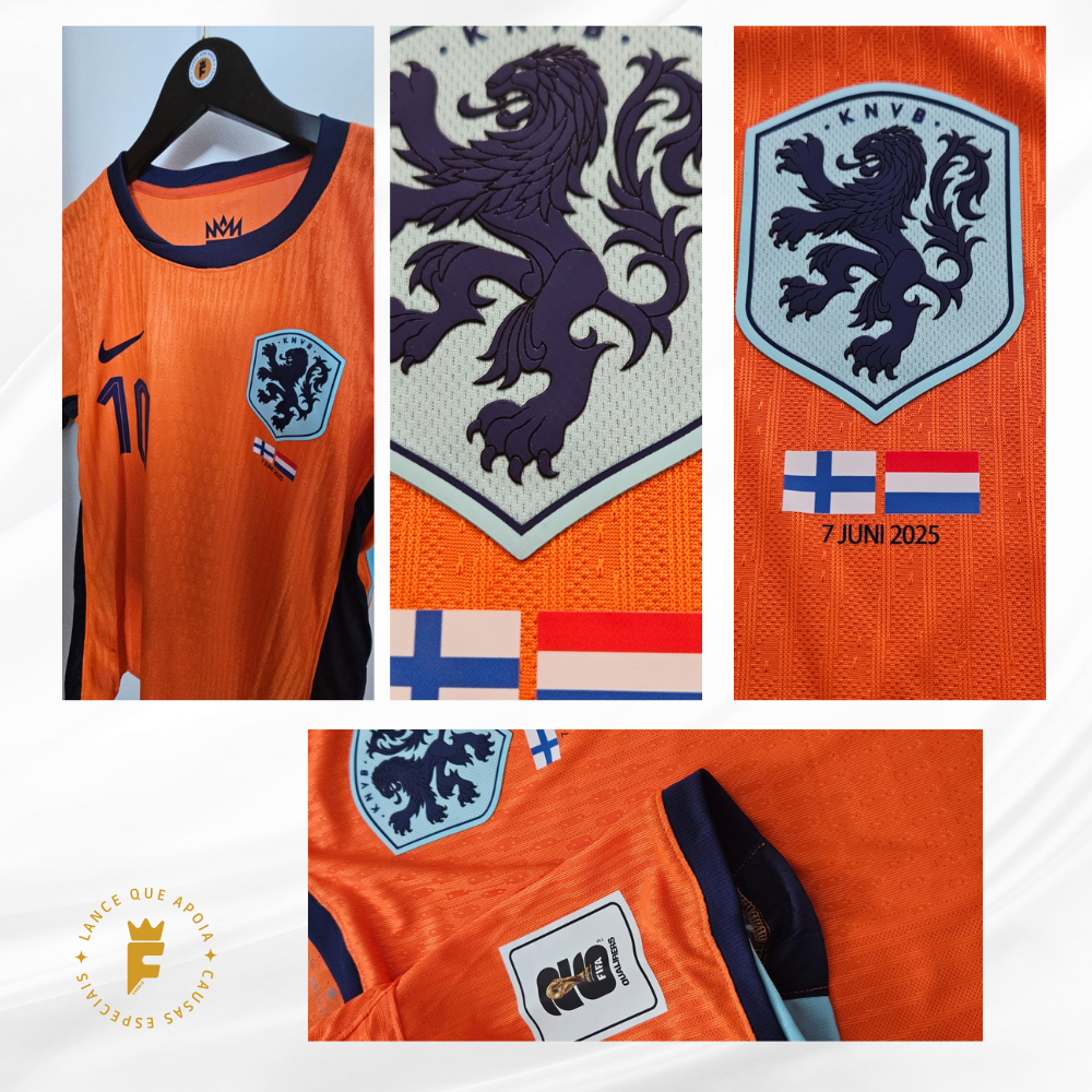 Camisa Holanda 2025 Eliminatórias Copa, de jogo, N10 autografada Memphis