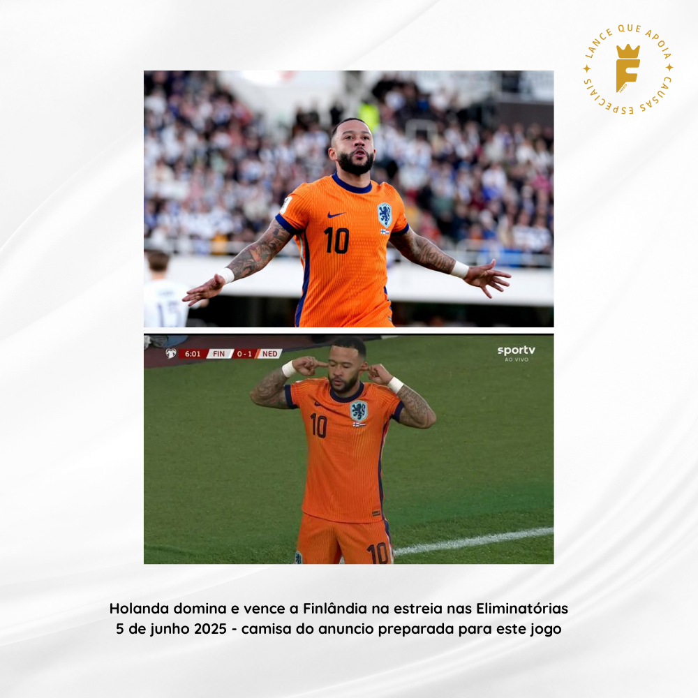 Original de jogo/preparada partida 07 de junho 2025 Eliminatórias da Europa para a Copa do Mundo de 2026 Finlândia 0 x 2 Holanda, gols Memphis Depay - 6'