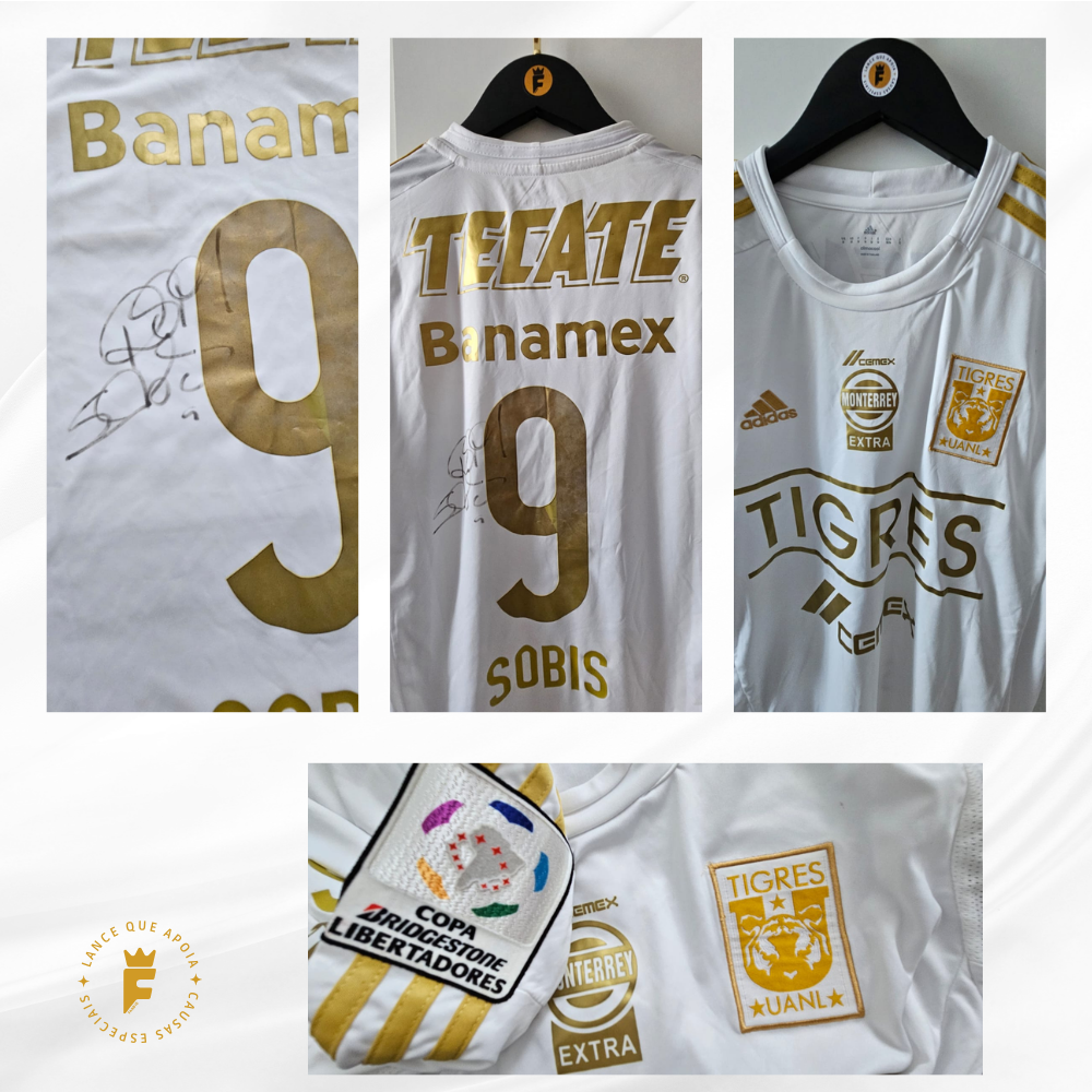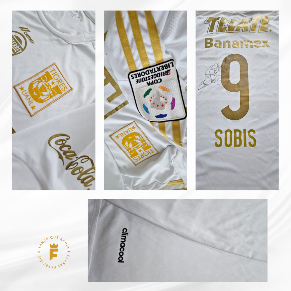 Camisa III do Tigres UANL 2014-15, vers jogador Libertadores, autografada Rafael Sóbis