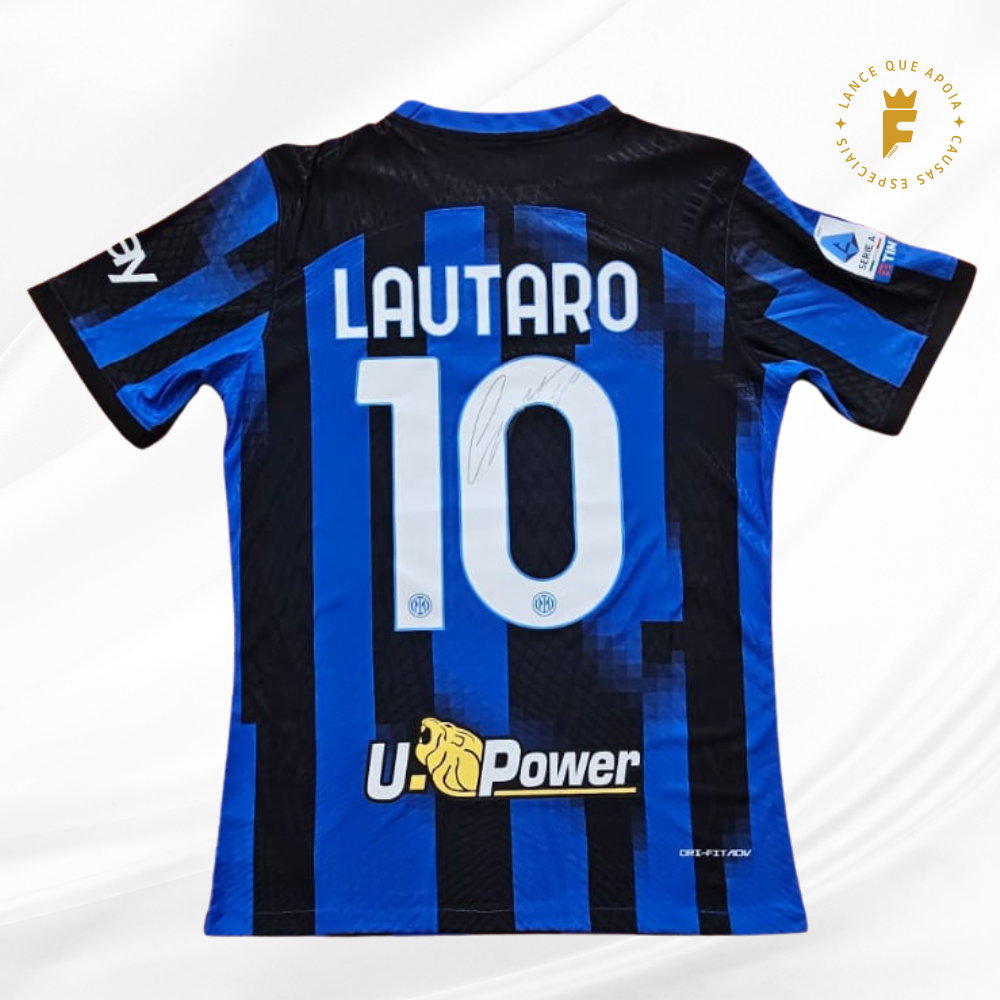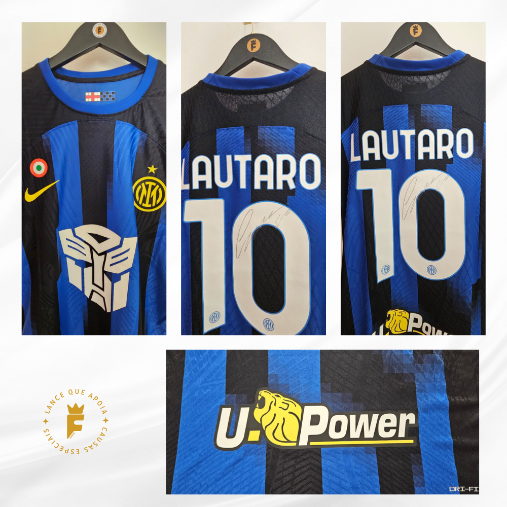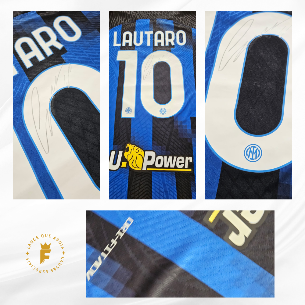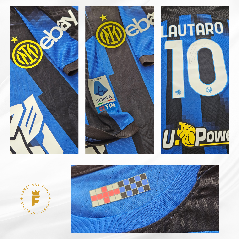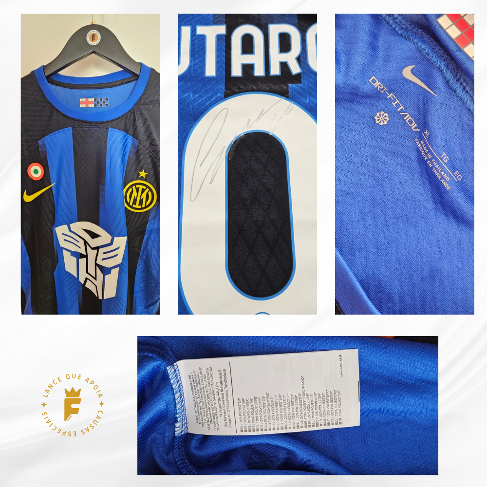 Camisa Inter de Milão 2023- 24, vers jogador autografada Lautaro Martínez