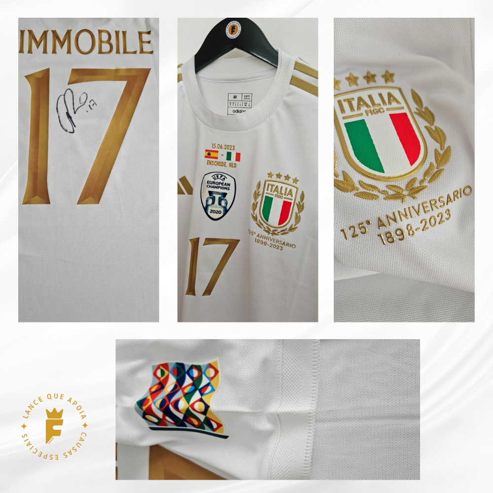 Camisa Itália 2023, Edição Especial 125 anos, vers jogo, N17 autografada Ciro Immobile