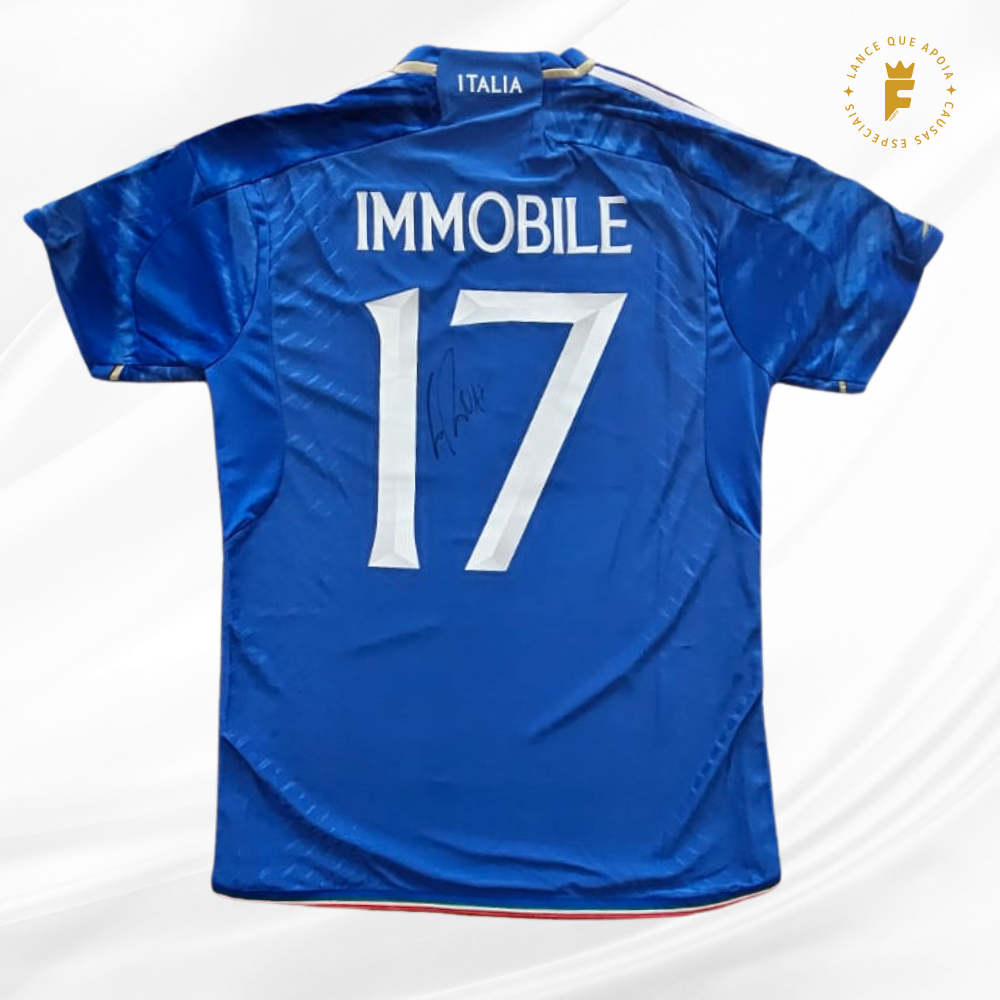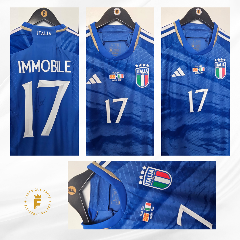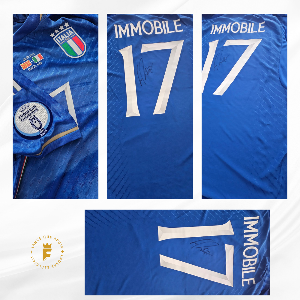 Camisa Itália 2023-24, vers jogo, Eliminatórias Euro, autografada Ciro Immobile