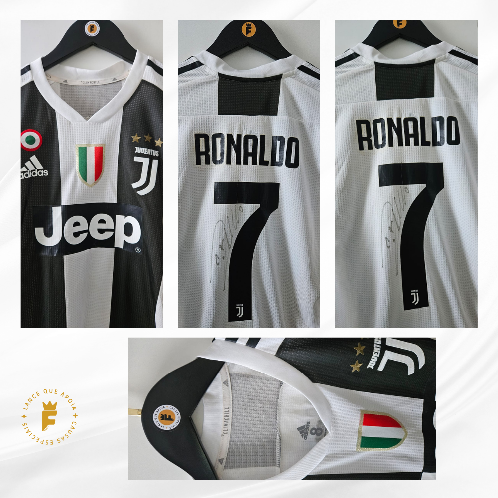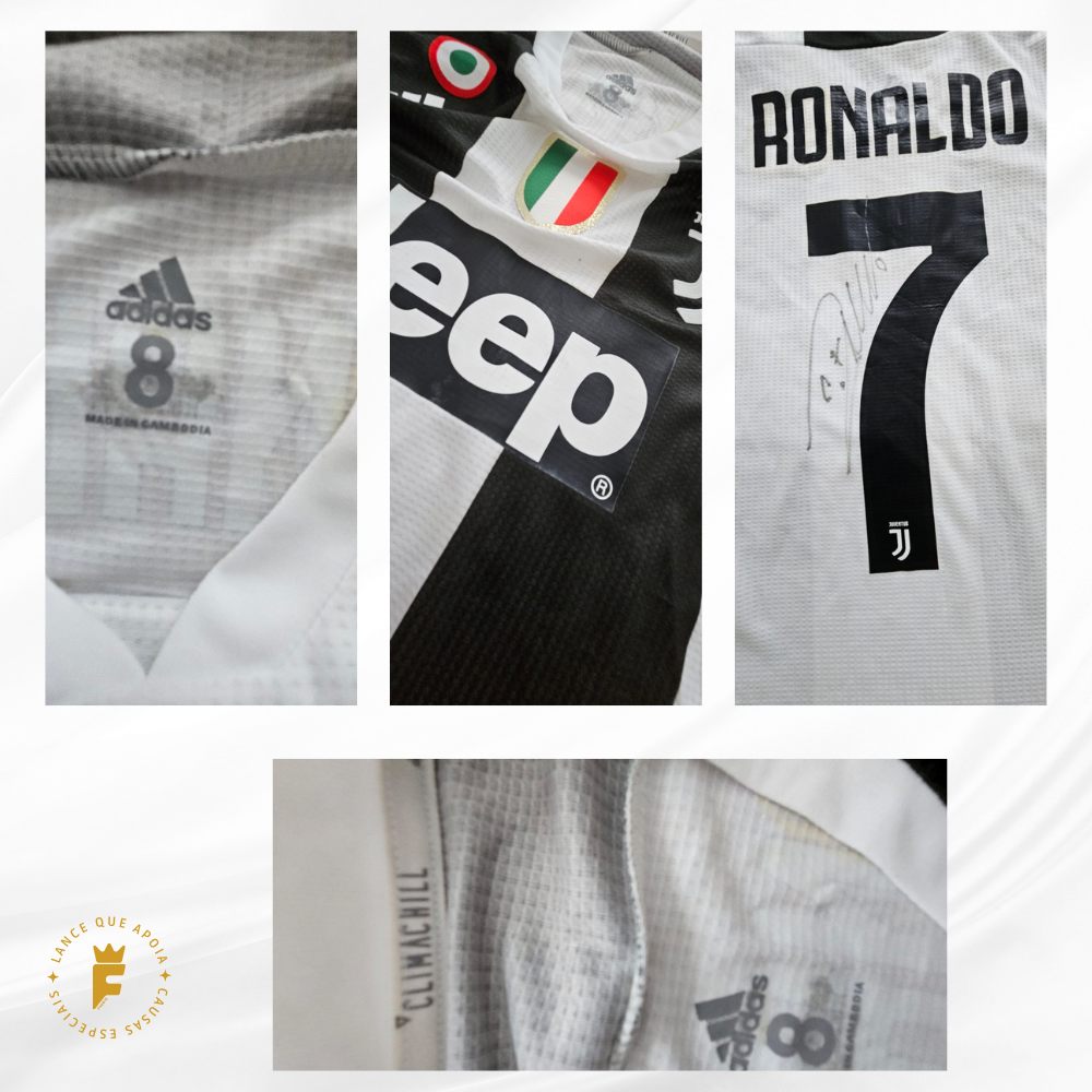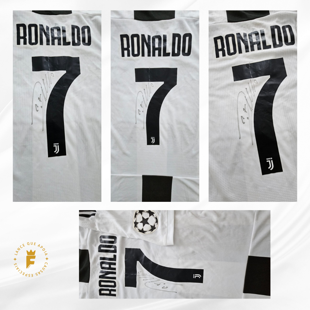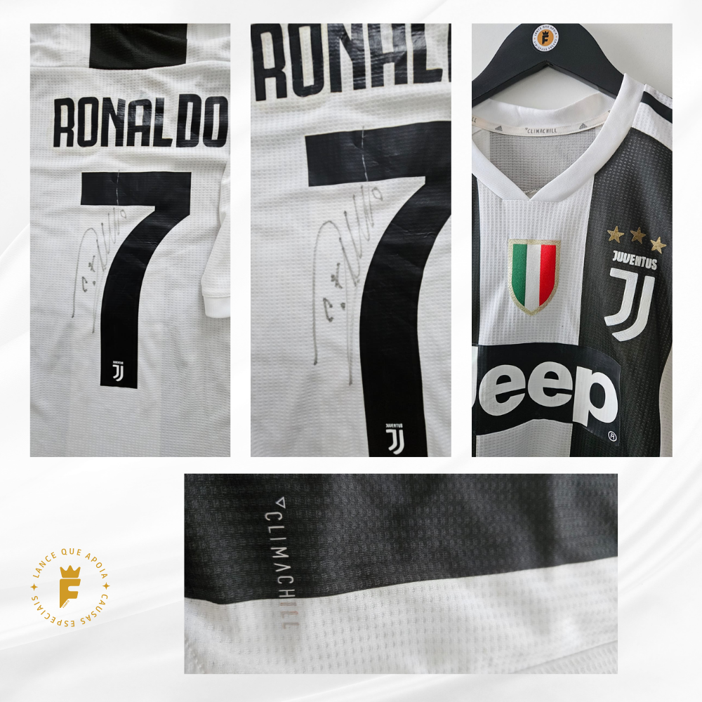Camisa Juventus 2018-19, vers jogo, autografada Cristiano Ronaldo