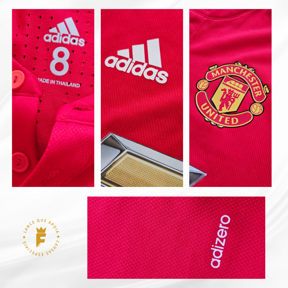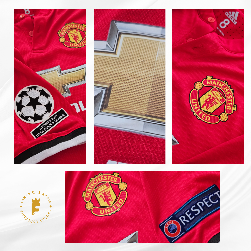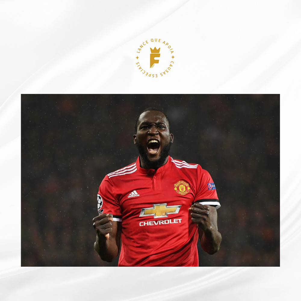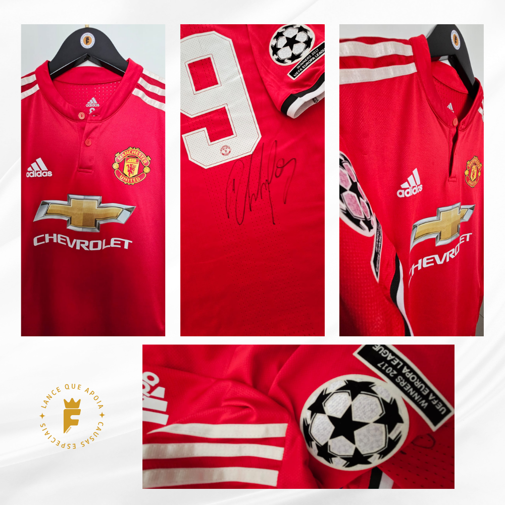 Camisa Manchester United 2017-18 Champions League, vers jogo, autografada Lukaku