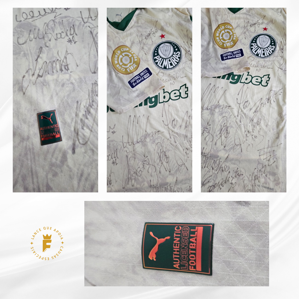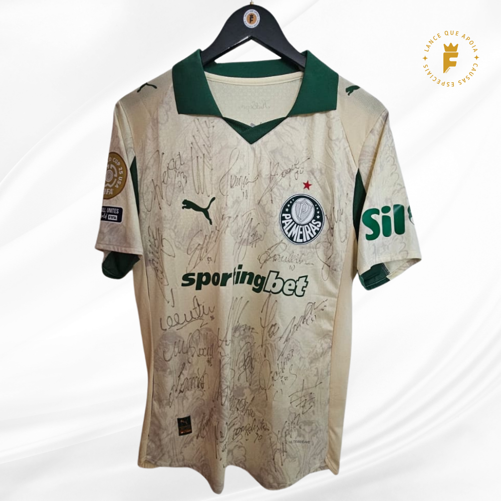 Camisa Palmeiras, vers jogo Edição Especial Copa do Mundo de Clubes 2025, autografada elenco.
