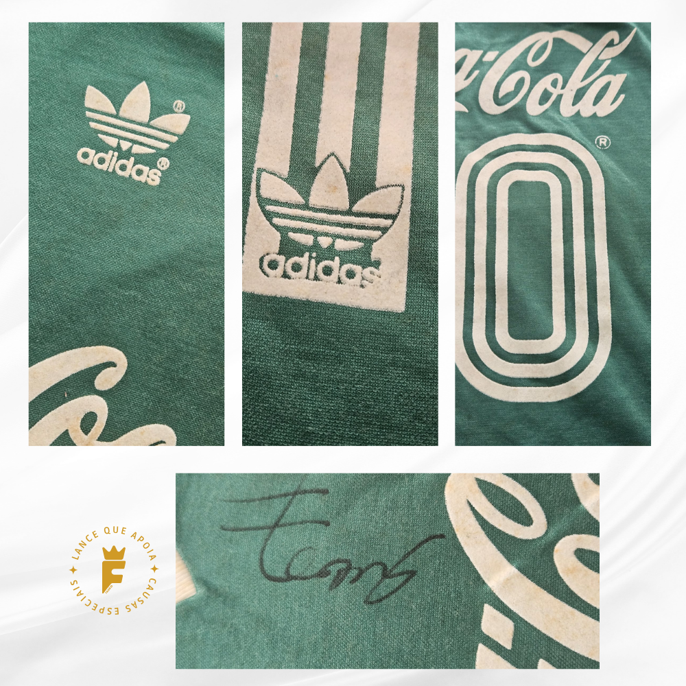 Camisa Palmeiras 1988-89 original da época infantil, autografada Marcos e Leão