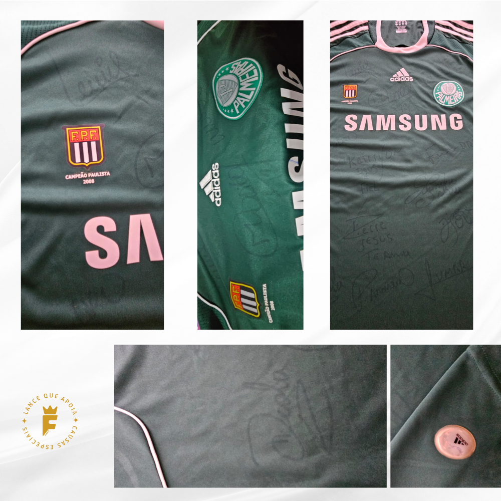 Camisa Palmeiras 2008-09 vers de jogo Libertadores, autografada