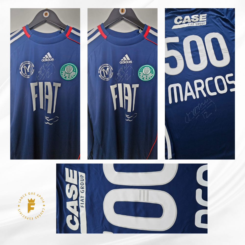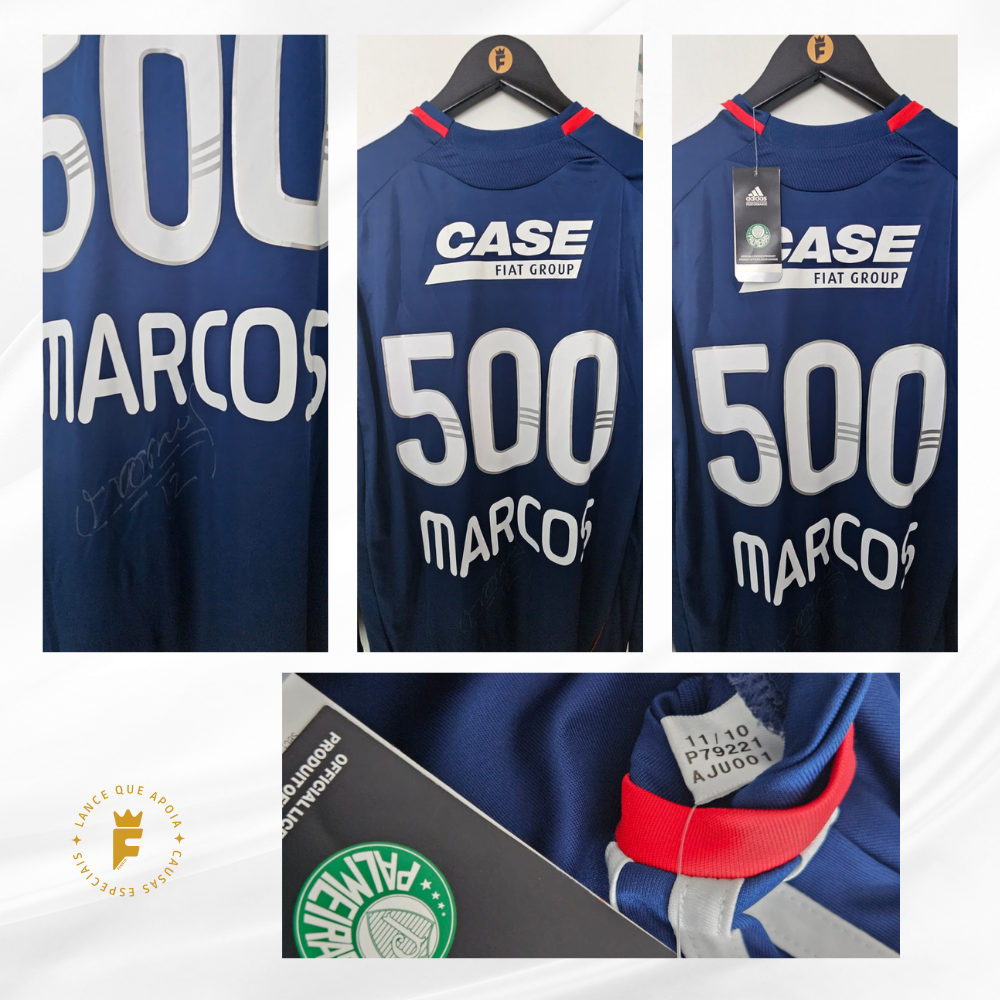 Camisa Palmeiras 2010 edição especial homenagem 500 partidas goleiro Marcos, autografada. Rara.